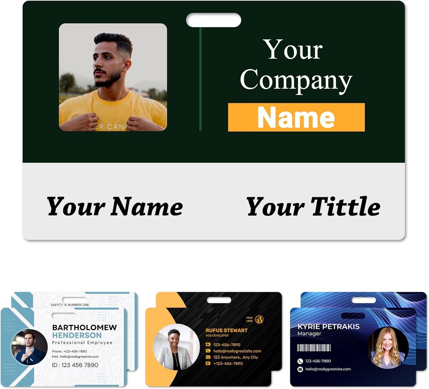 Custom Id Badge Custom Id Card Identification Badges Customizable Personalized Name Badge Customize Name Tag Photo Logo Employee Work Office Volunteer Customized Personal (Horizontal-2)