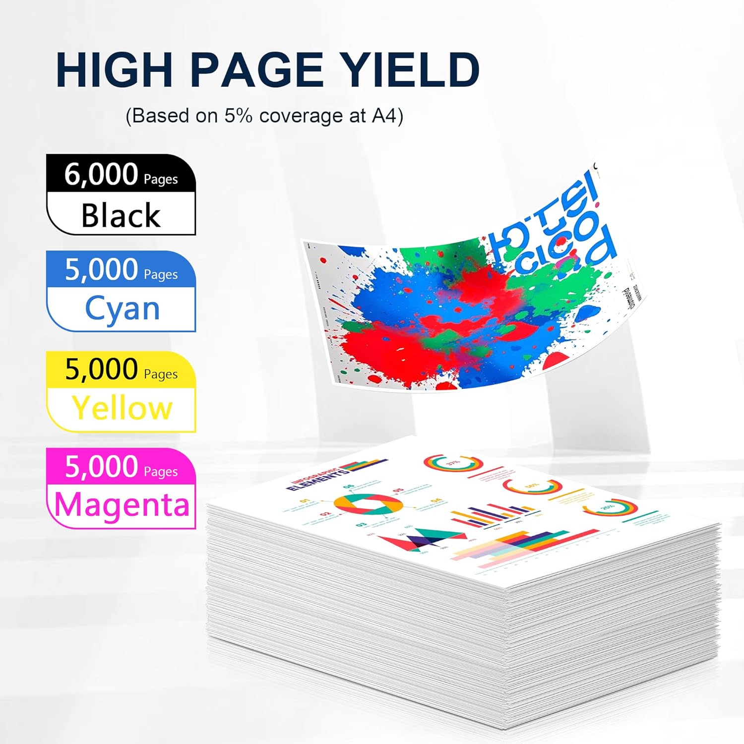 - High Page Yield: 6,000 pages for 508A CF360A black toner cartridge and 5,000 pages for per 508A CF361A CF362A CF363A color toner cartridge based on 5% coverage (Letter/A4)