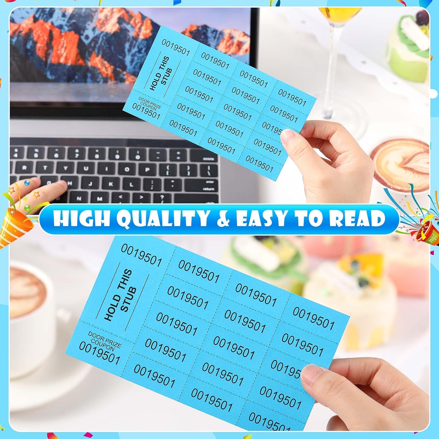 - Various Colors: these raffle tickets manufactured from paper with a smooth, flat surface and a medium thickness for stability; They're crafted with clean perforations for effortless tearing, It should be stated that each ticket book has numbers, and every book comprises 17 identical numbers, including 2 stubs and 15 bid numbers; Please keep in mind that it's not possible to select the beginning number for each batch