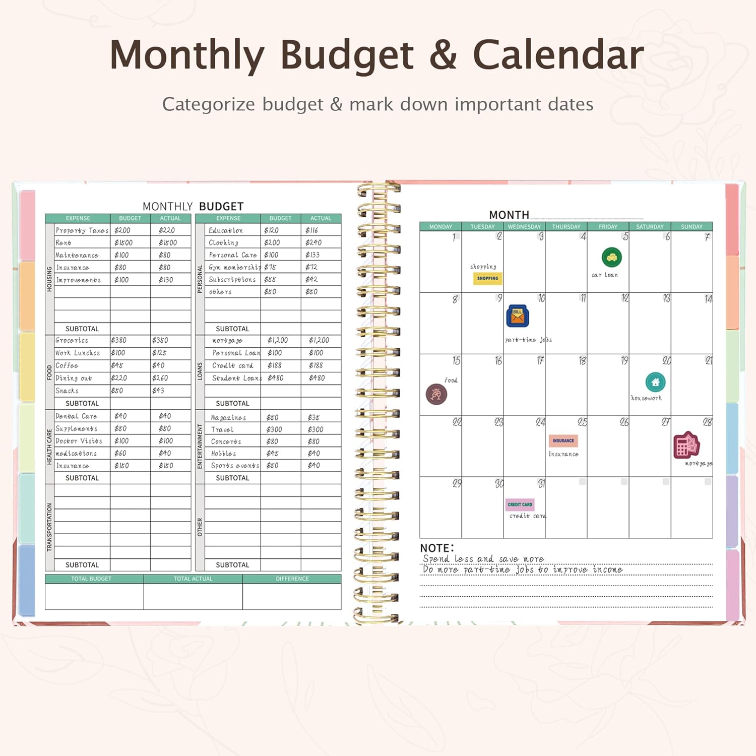- Upgraded Product Features - A Large 8.5 x 11''Budget Book with premium thick paper offers enough space for budgeting and marking down your important dates for financial deadline, 12 monthly inner pockets with index and the zipper storage pouch help you organized your monthly bills and receipts, also the decorative stickers provide your budget plan with colors and joy.