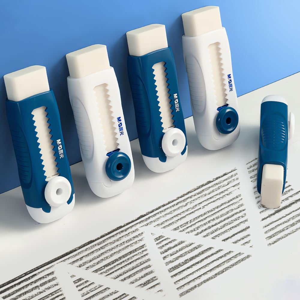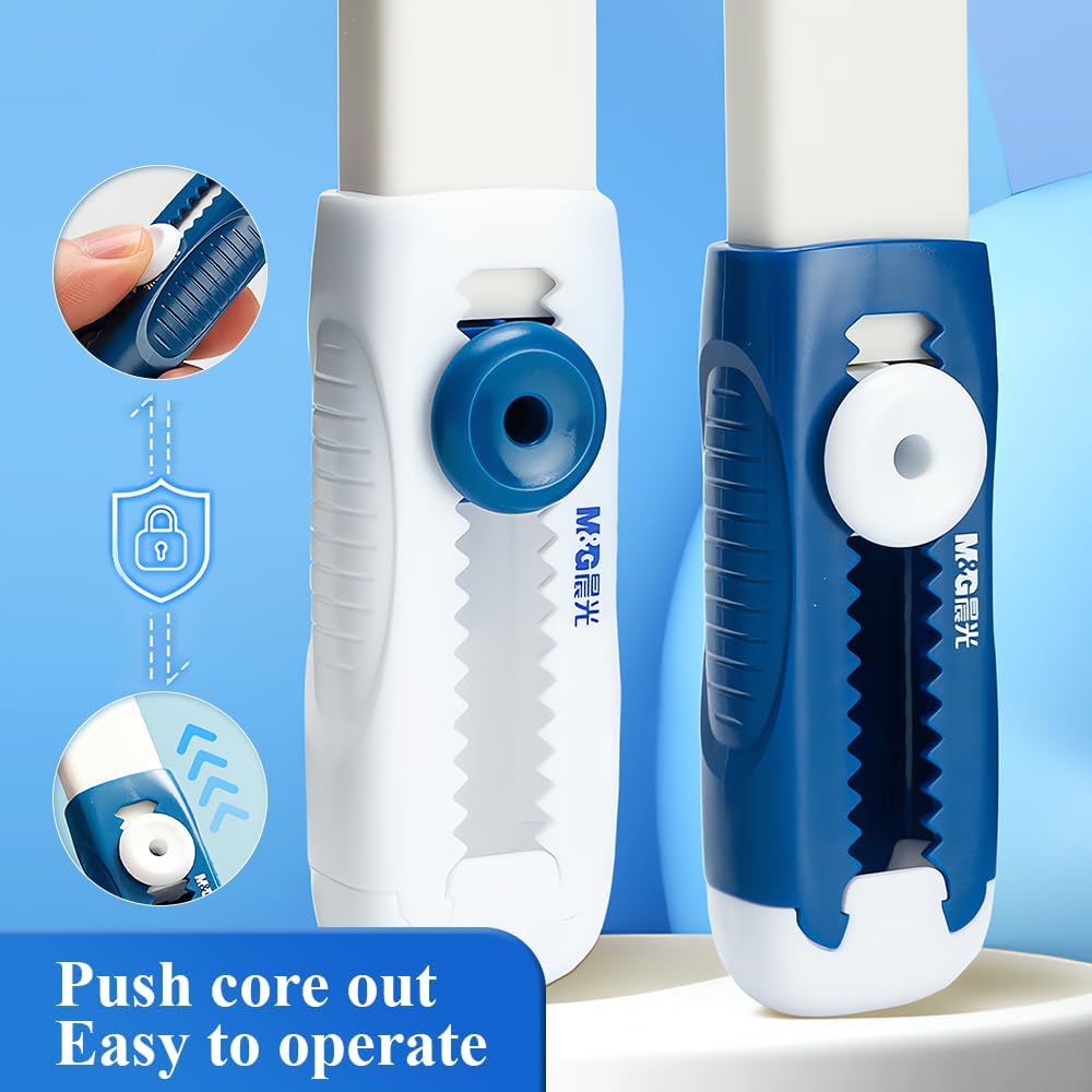 - 【Package Includes】: Our M&G package included 4pcs white push-pull retractable eraser, suitable for remove pencil marks in most scenarios. You can easily correct mistakes on your notes with a gentle push