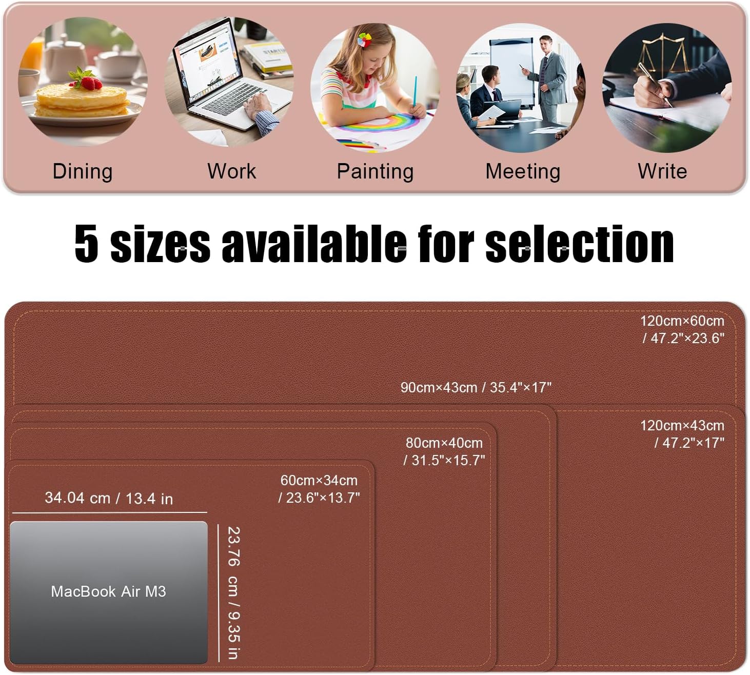 - 🖱️ 🖱️Superior Protection Mat for Desk: Durable PU leather and cork material, provide reliable protection for your desk surface. Safeguard your tabletop from everyday wear and tear with our Dual-Sided Desk Pad. This large mouse pad and desk mat combo is a protective barrier, preventing scratches, scuffs, and spills from damaging your workspace.