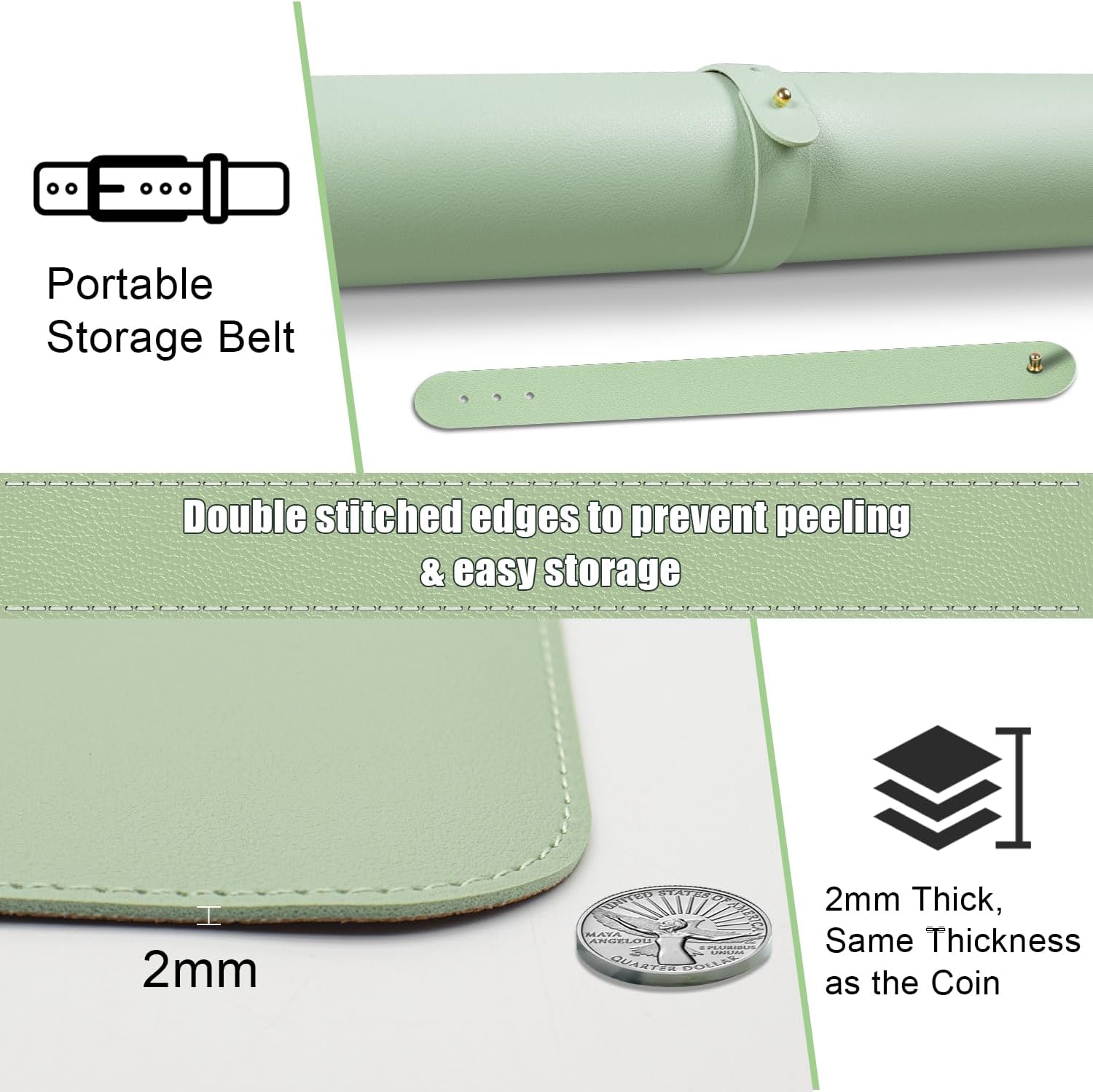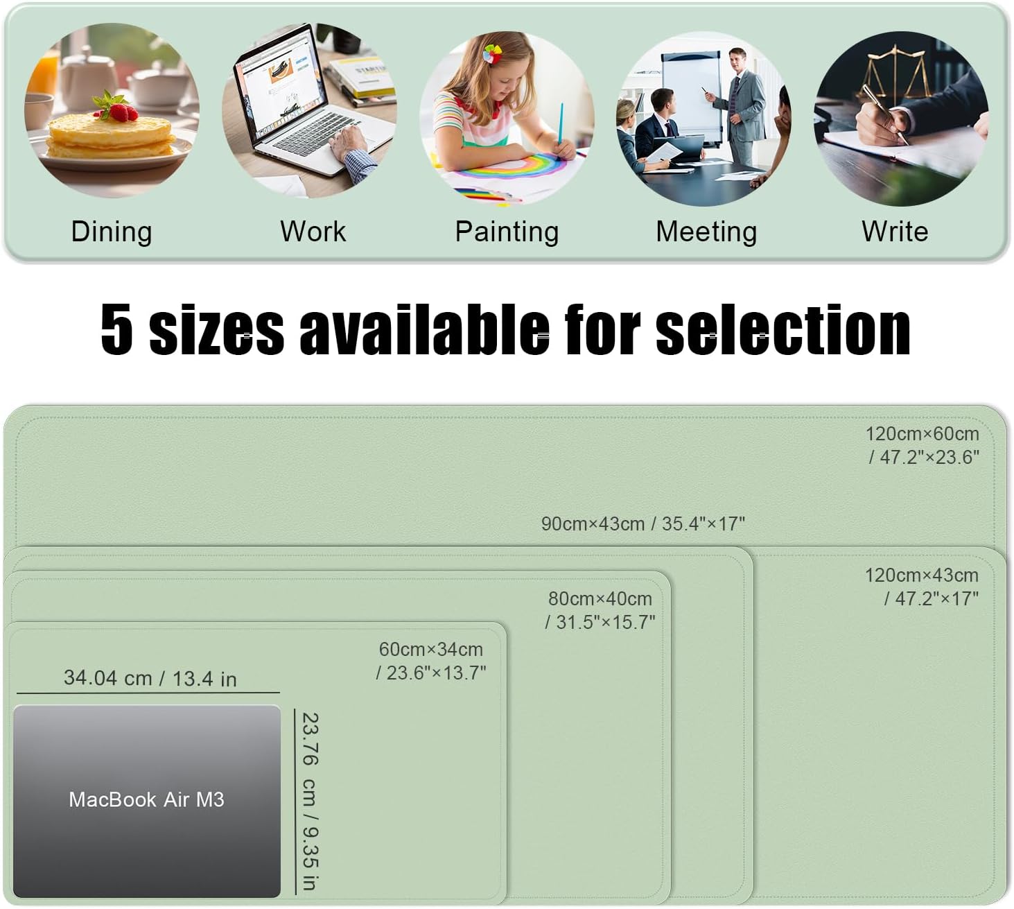 BLESWIN Large Desk Pad, 47.2'' x 23.6'', Office Desk Mat, Computer Mat for Desk, Leather Desk Pad Protector, Sewing Desk Blotter, Desktop Writing Pad for Office/Home/Decor Light Green