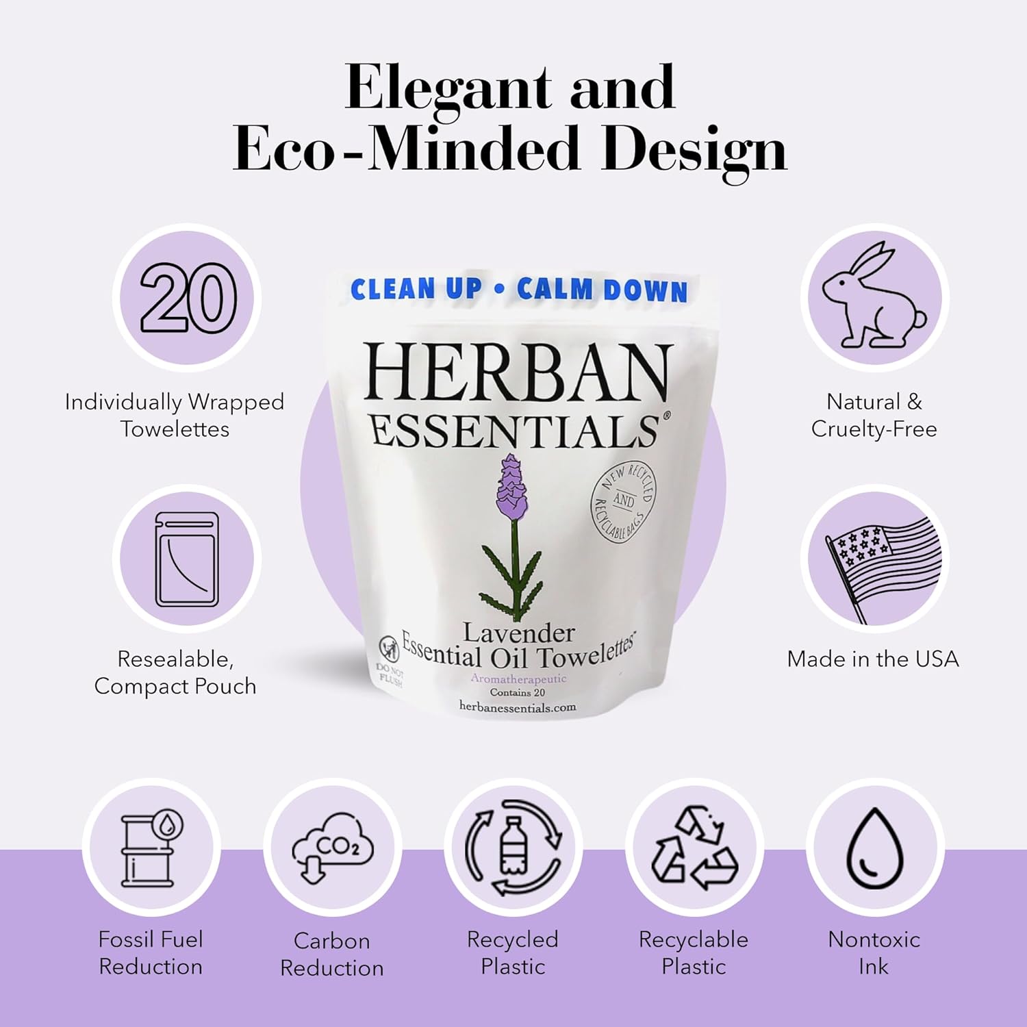Herban Essentials - Lavender Wipes & Towelettes - Essential Oil Wipes for Make Up, Hands, Face & Body - Travel Size Essentials and Toiletries - Natural, Individually Wrapped and Disposable (20 count)