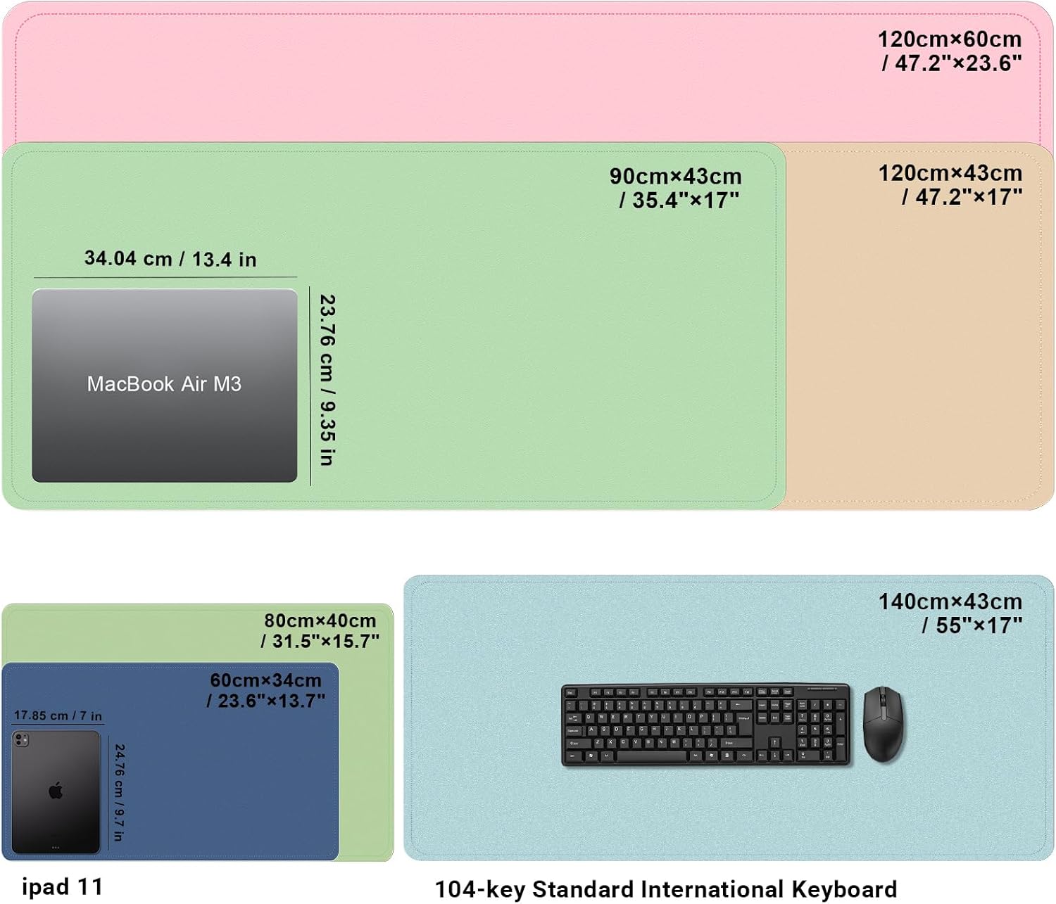 - 🖱️ 🖱️Waterproof and Easy to Clean Desk Mat: Our leather desk mat is specially designed to handle any spills or messes during use. Made with a waterproof and stain-resistant combination of PU leather, these keyboard mats for desks can be easily wiped clean with a wet cloth, ensuring a hassle-free maintenance experience. Designed with side seams to prevent peeling.
