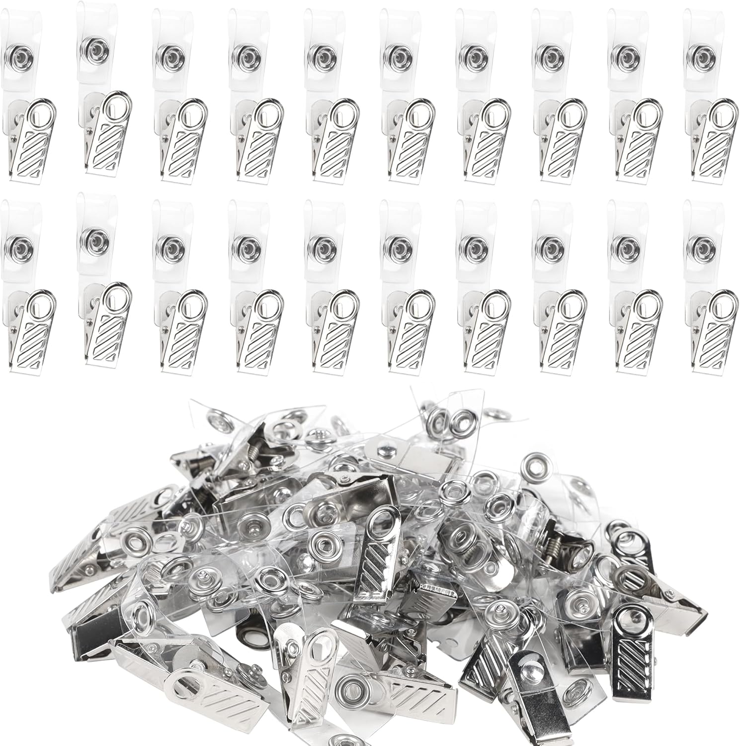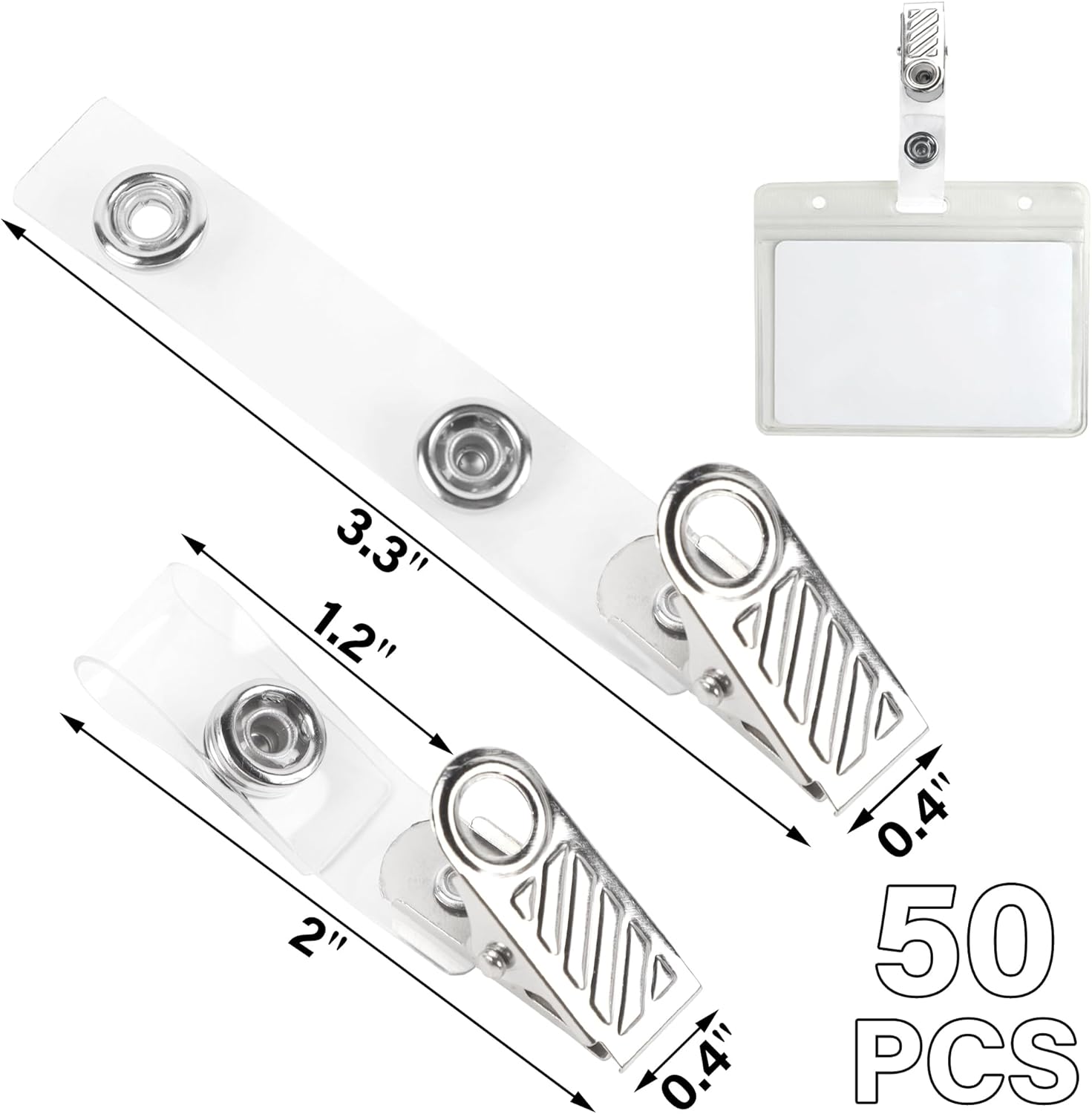 Happy Trees 50 Pcs Metal Badge Clips with Clear PVC Straps, ID Holder Clip for Badge Holders, Name Tags, ID Cards, Work Badges