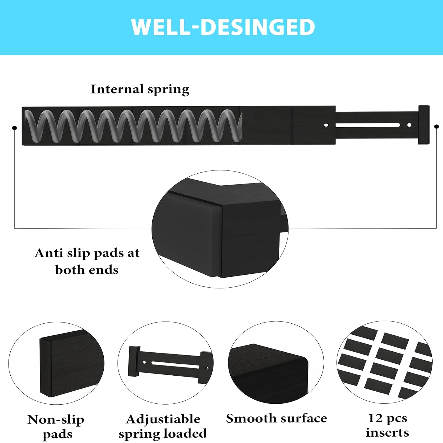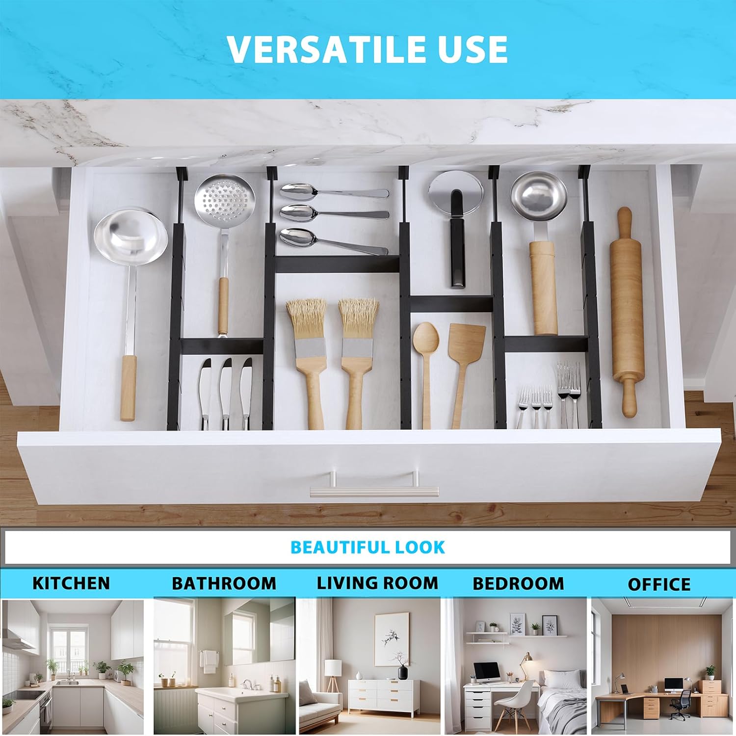 - DRAWER FRIENDLY DESIGN: The ends of our drawer dividers feature non-slip pads to keep them in place and protect your drawers from scratches, keeping your utensils, clothes and cosmetics safe enough