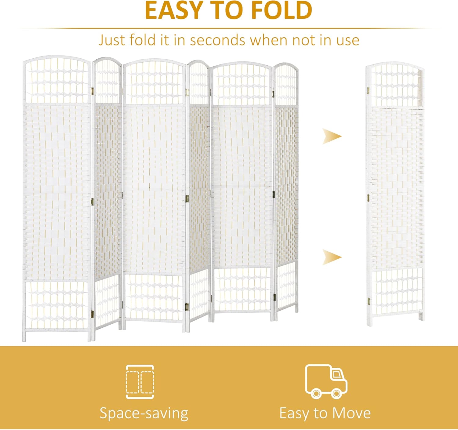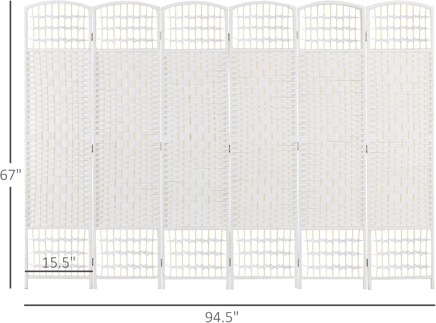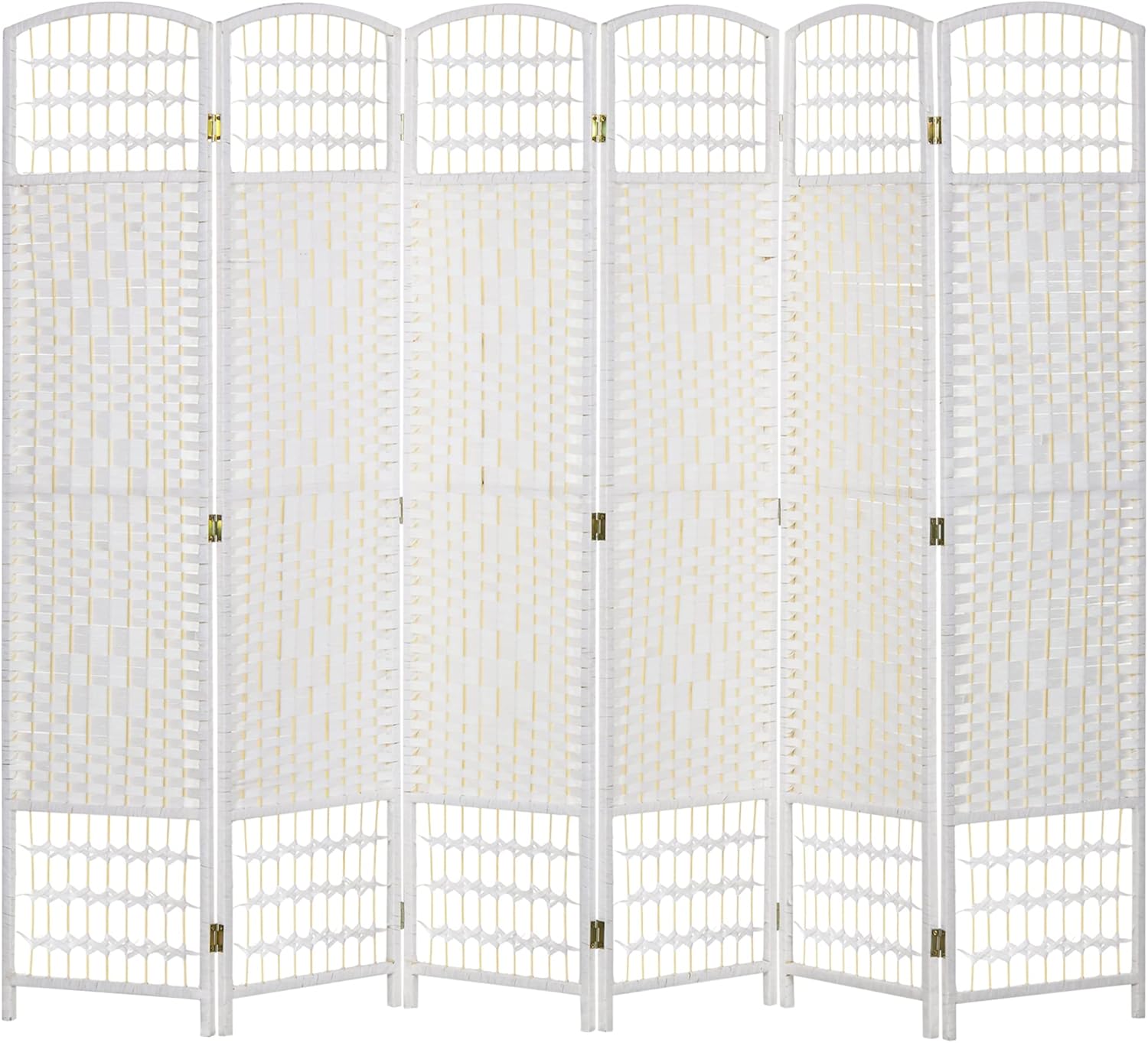 NicBex Room Divider 6 Panel Room Dividers with Woven Paper Design Partition Room Dividers and Folding Privacy Screens 5.6 FT Wall Divider for Office, Room Separation,94.5" W x 0.5" D x 67" H, White