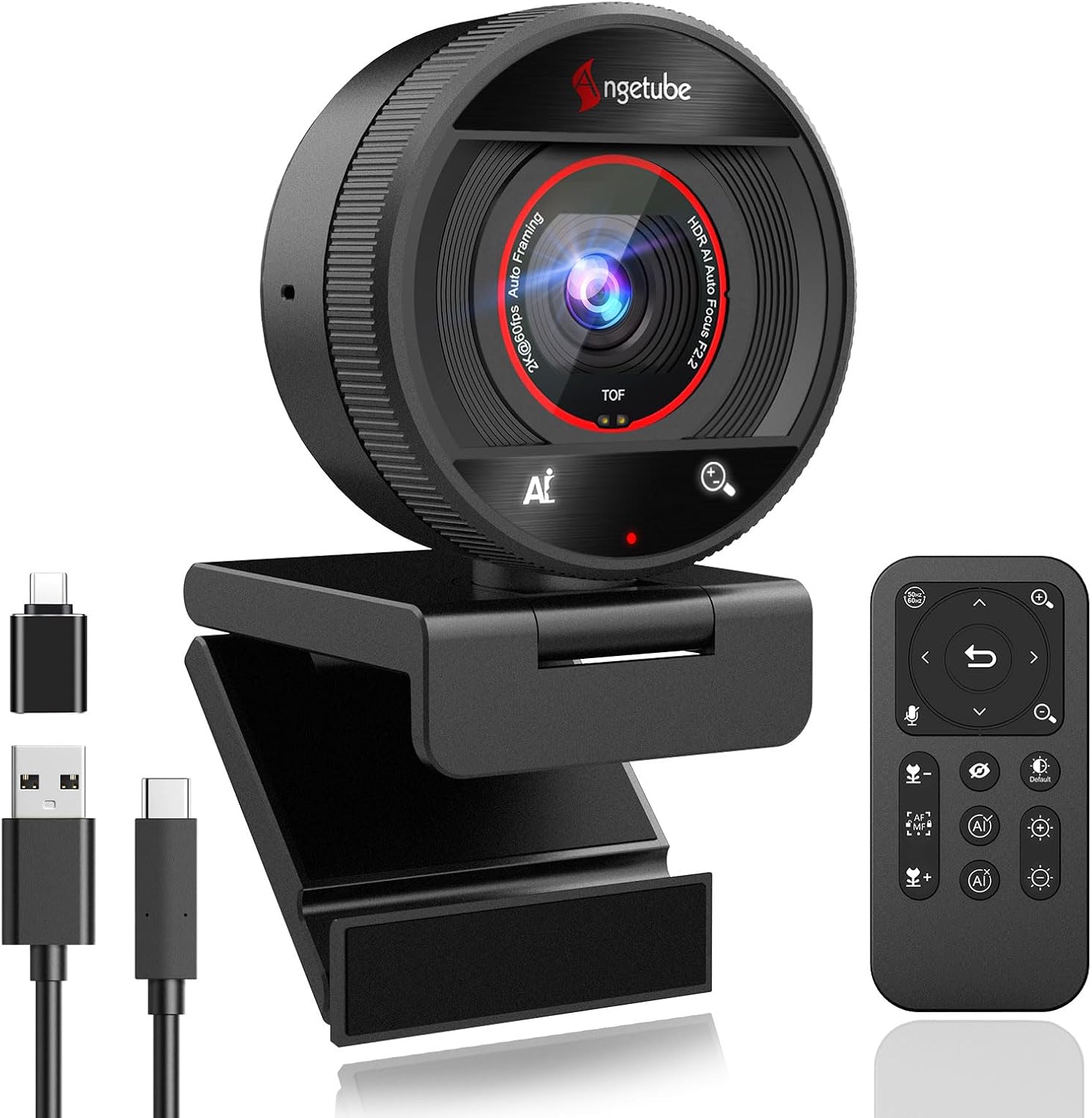 Angetube AI Webcam for PC - 1080p/2K@60FPS HD Web Camera with Remote Control, 8X Digital Zoom Webcam, Privacy Cover, TOF Auto Focus, HDR, USB 3.0 Web Cam Work with Zoom, Skype,Teams, Windows,Mac