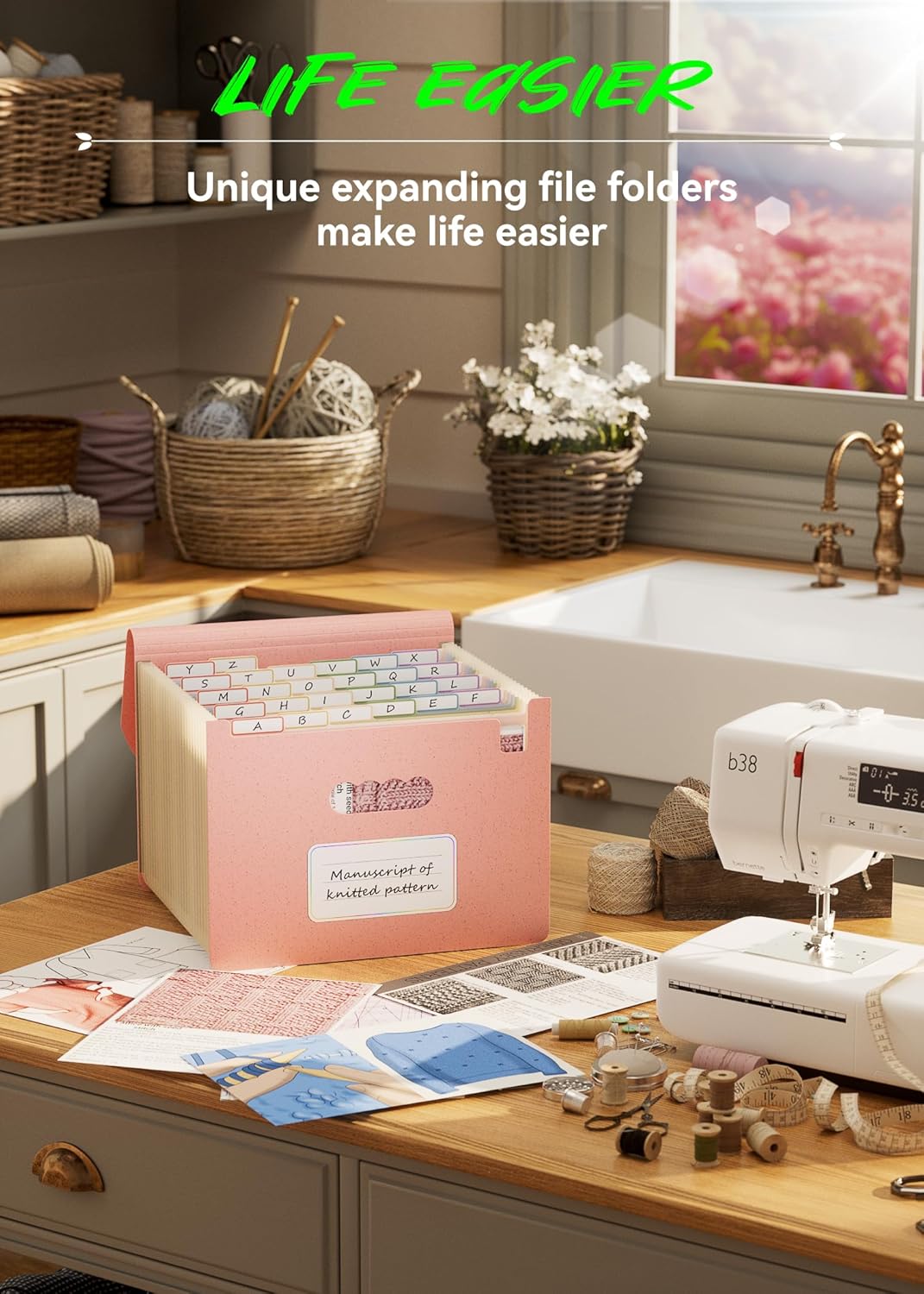 Accordion File Organizer, 26 Pockets Wheat Straw Expanding File Folder, Monthly Bill Receipt Organizer,A-Z Tabs,100% BPA Free,Return to Nature Healthy Living,Letter/A4 Size - Strawberry Pink