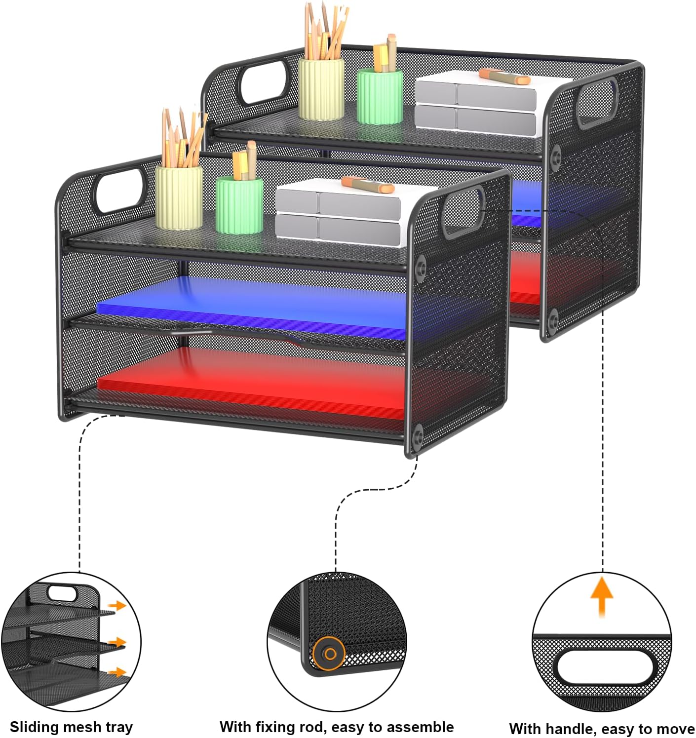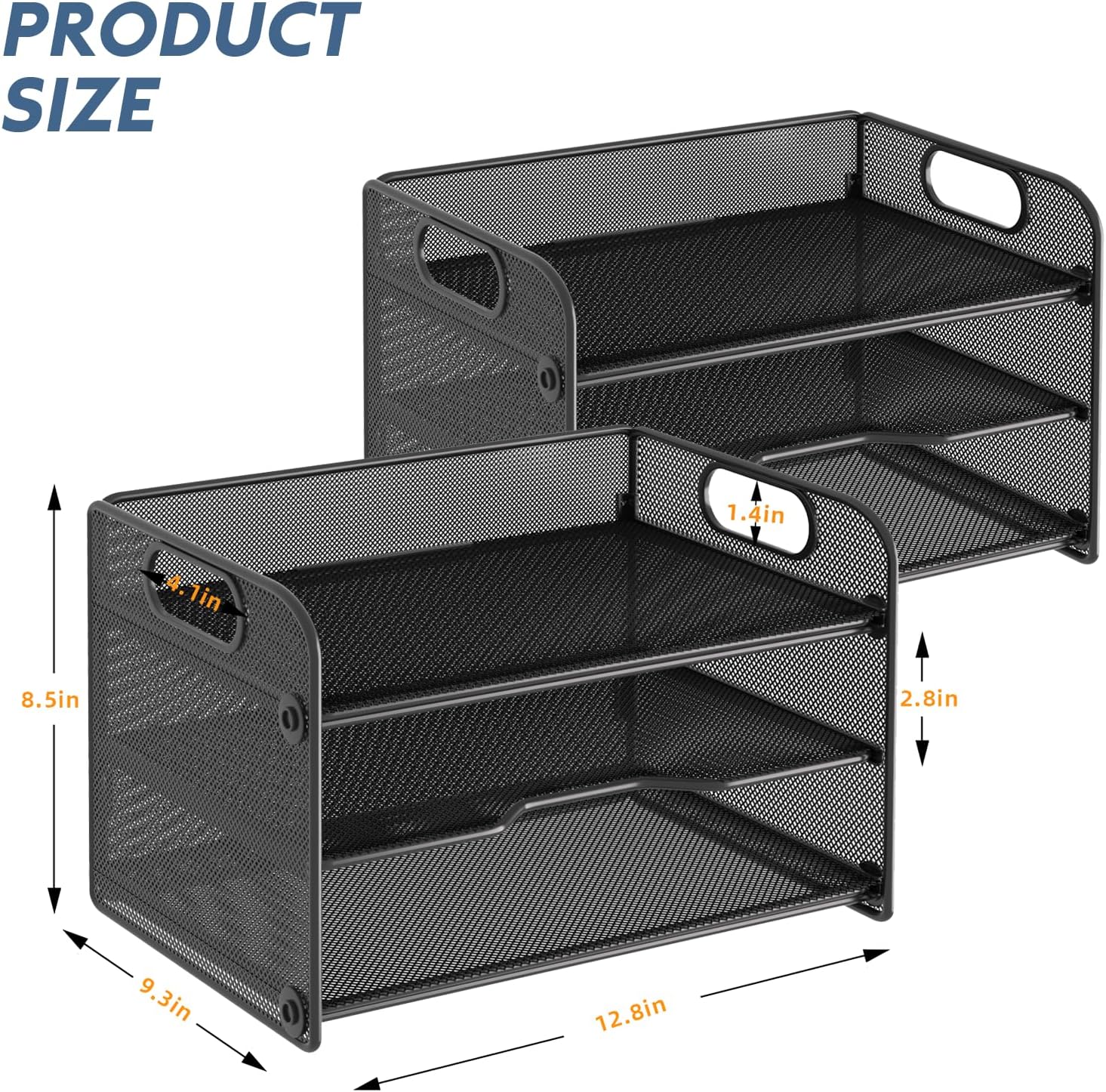 samstar 2 Pack 3 Tier Letter Tray Paper Organizer with Handle, Mesh Desk Organizer Paper Sorter File Rack Shelves, Black
