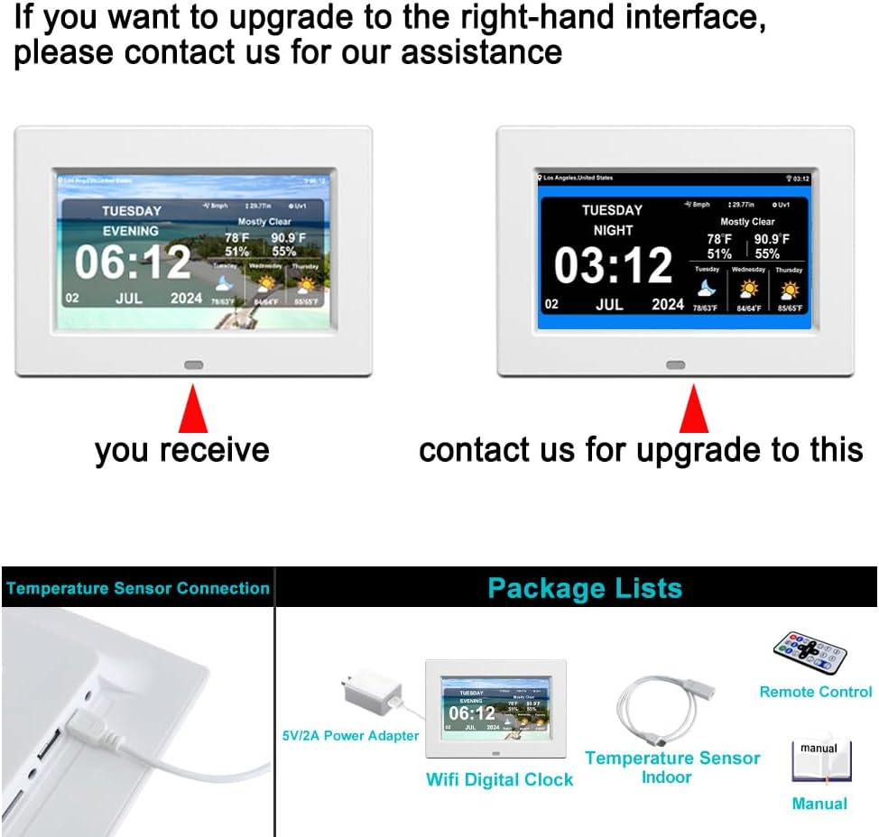 - 【Network Clock Function】: By connecting to a wireless network, the clock automatically updates the time, eliminating the need for manual time adjustment, which is very user-friendly for the elderly. Additionally, it can read and play pictures and videos from a USB drive (supports up to 32GB capacity). Note: It cannot play online videos.