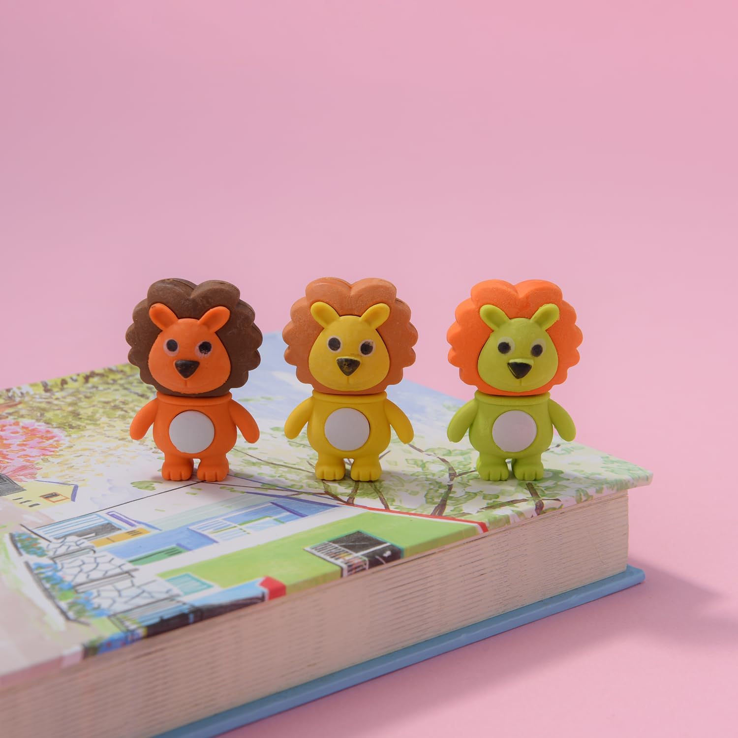 12 Pack Lion Erasers for Kids, 3D Animal Erasers for Boys and Girls, Fun Take Apart Erasers for School Supplies Prize Gifts Party Favors