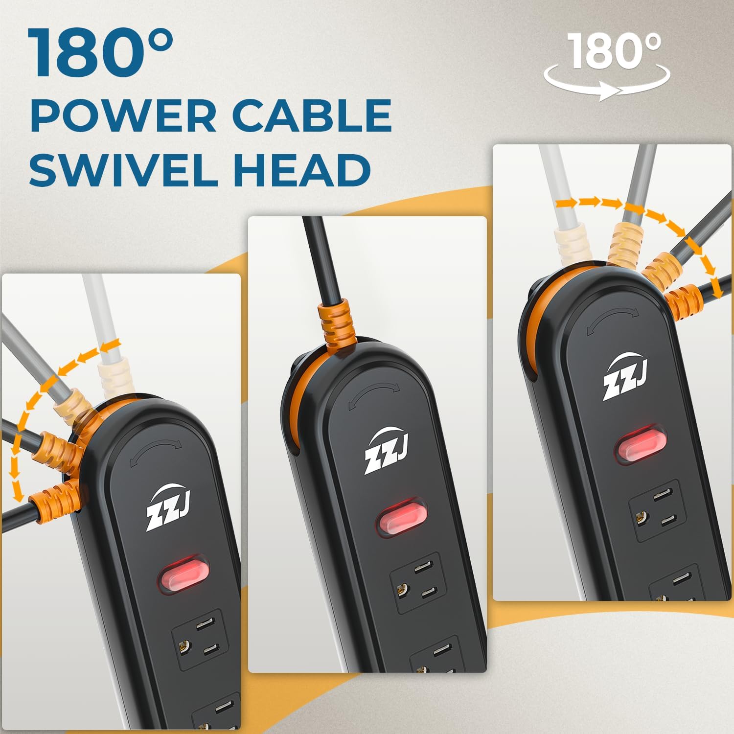 - 180° Power Cord Swivel Head: Free to switch the socket placement, easy to apply to desk, meeting room, home, university dormitory, TV cabinet, bedside and other areas, let the socket free placement.