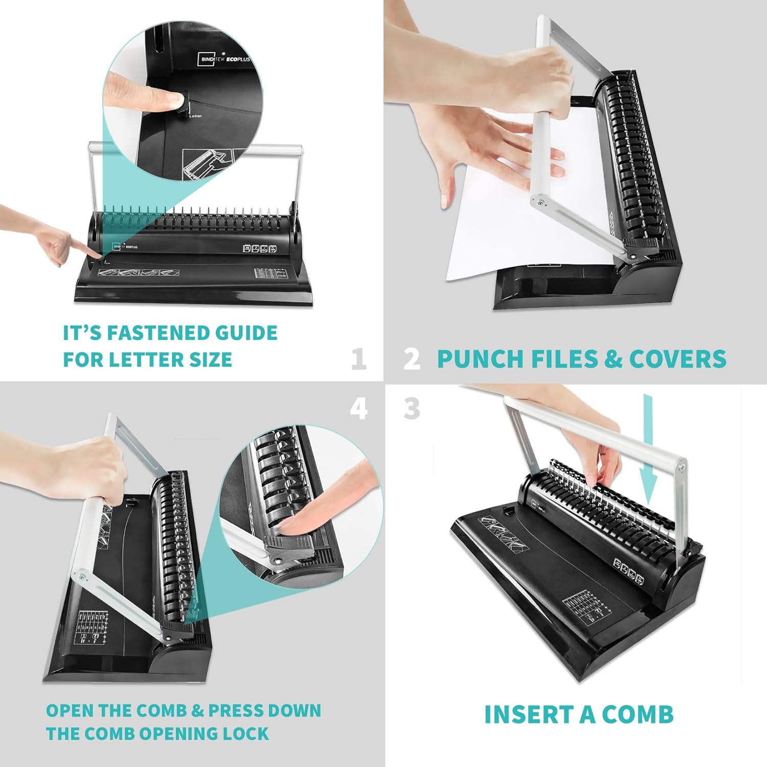 - 【1/2" Binding Combs Included】Our comb binding machine comes with a starter kit that includes 30 black 1/2" binding combs. These 19-ring comb binding spines are designed to ideally fit letter-sized papers. They are well-suited for use in school, offices or at home, making them a great gift for teachers, students, and colleagues.