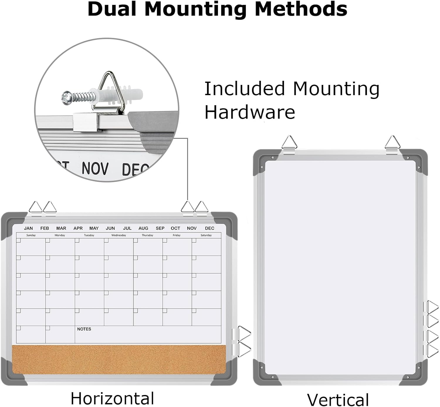 EAONE 16x12 in Double Side Whiteboard Calendar & Cork Board Combo for Wall, 3 in 1 Magnetic Dry Erase Whiteboard Monthly Calendar and Bulletin Board with Aluminum Frame for Home Office Kitchen