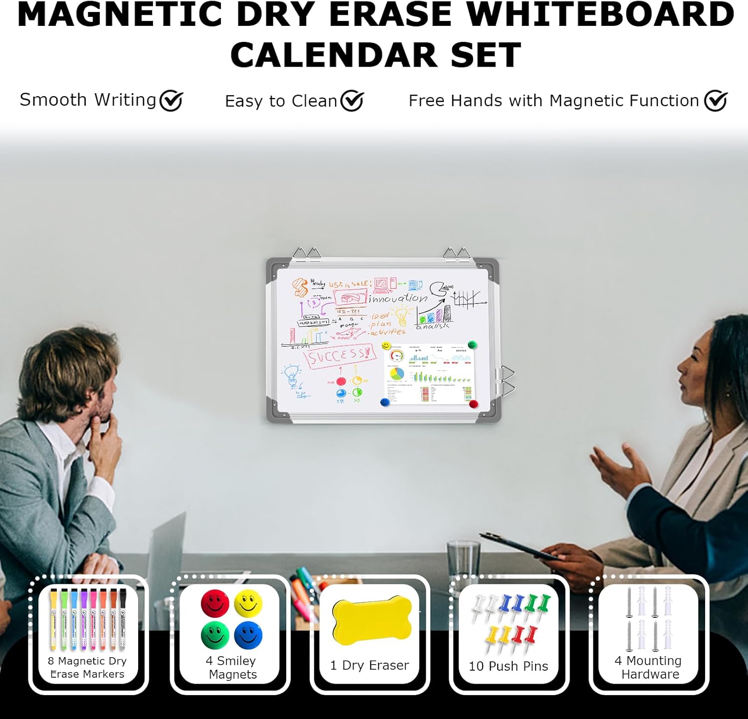 - 【Stability & Safety】 The magnetic whiteboard calendar is wrapped with a durable aluminum frame, resistant to impact and scratch, enhancing its stability. In addition, the ABS caps on four corners of the dry erase board improve the safety of use. The design of the overall frame not only makes it a valuable addition to offices, schools and homes with appealing view, but also ensures its high product quality and transportation safety.