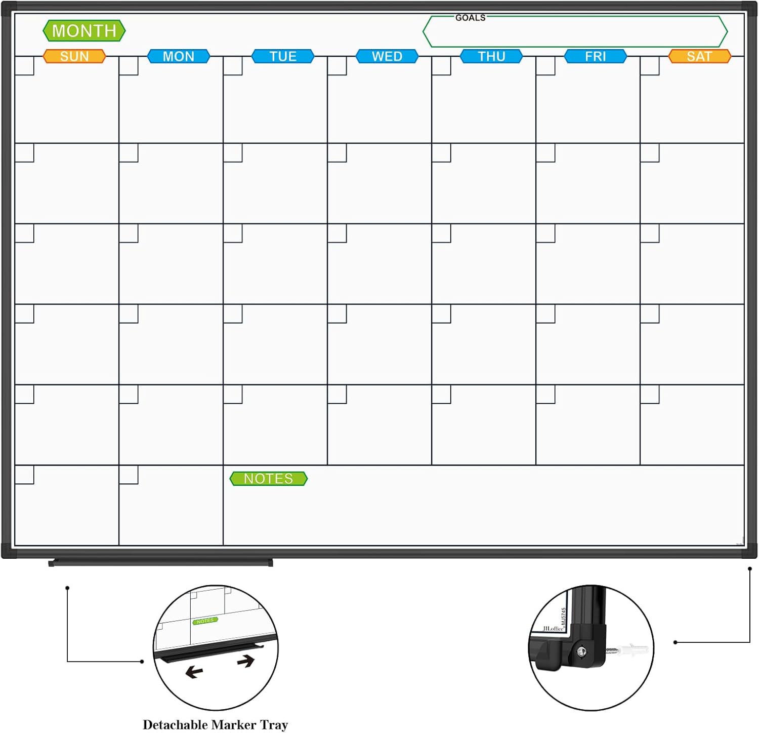 JILoffice Magnetic Dry Erase Calendar Whiteboard, 1 Month White Board Calendar Planner 48 X 36 Inch, Black Aluminum Frame Wall Mounted Board for Office Home and School