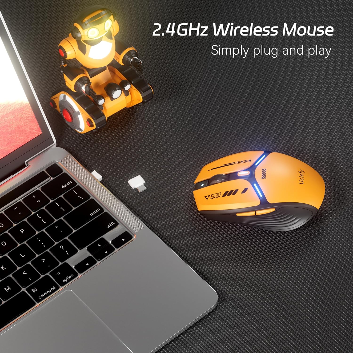 Uciefy V19 Wireless Mouse, 2.4GHz Rechargeable Mouse LED with Battery Indicator, Magnetic Computer Mice with USB Receiver & Type-C Adapter for Laptop/PC/Mac/Chromebook-Orange