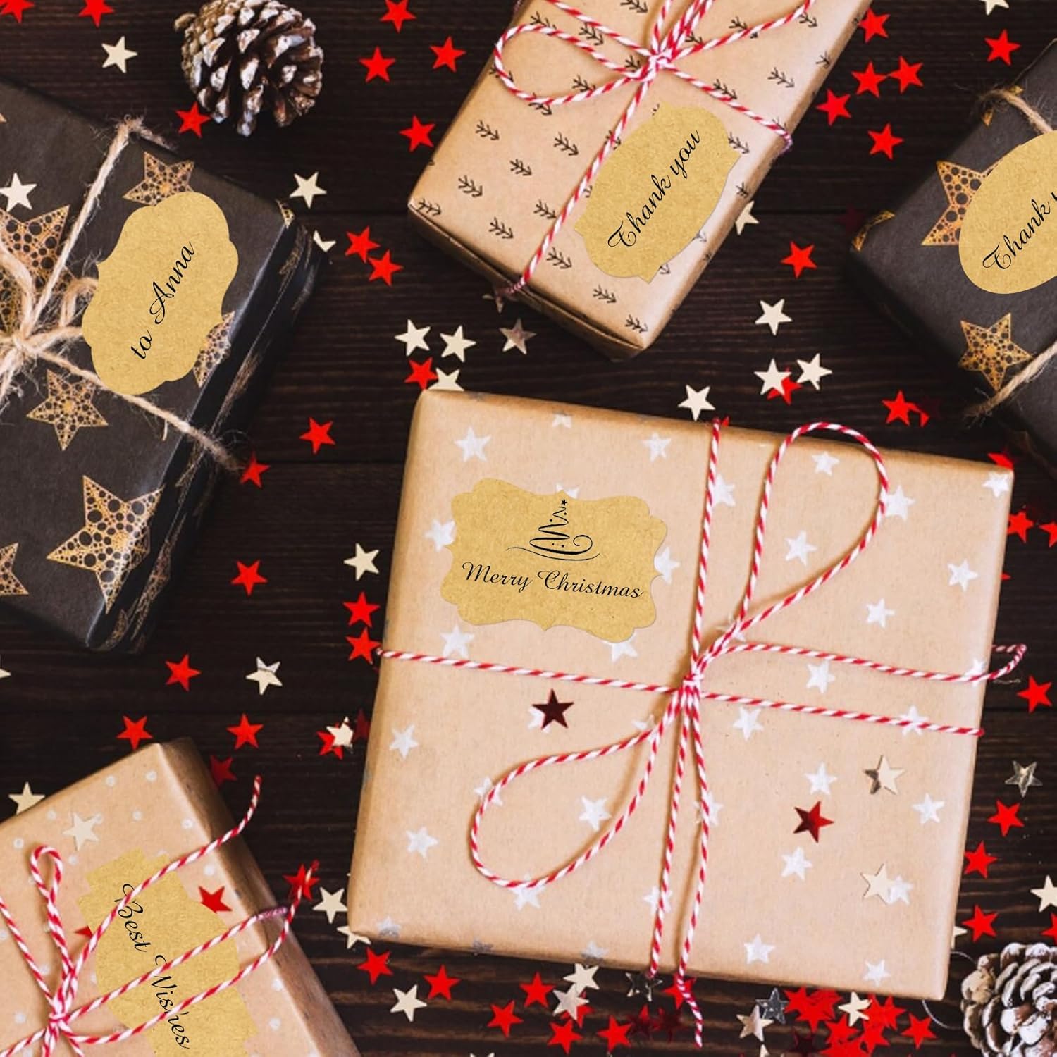 - Just need to peel off the sticker, write words and stick them where you want. With different color paper element, these sticker labels can not only be applied as Christmas gift tags, but also for wedding, birthday, mailing labels, name tags, etc.