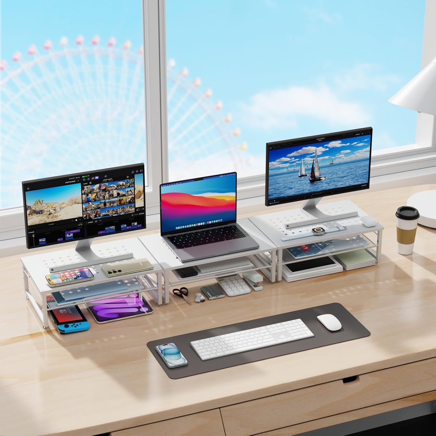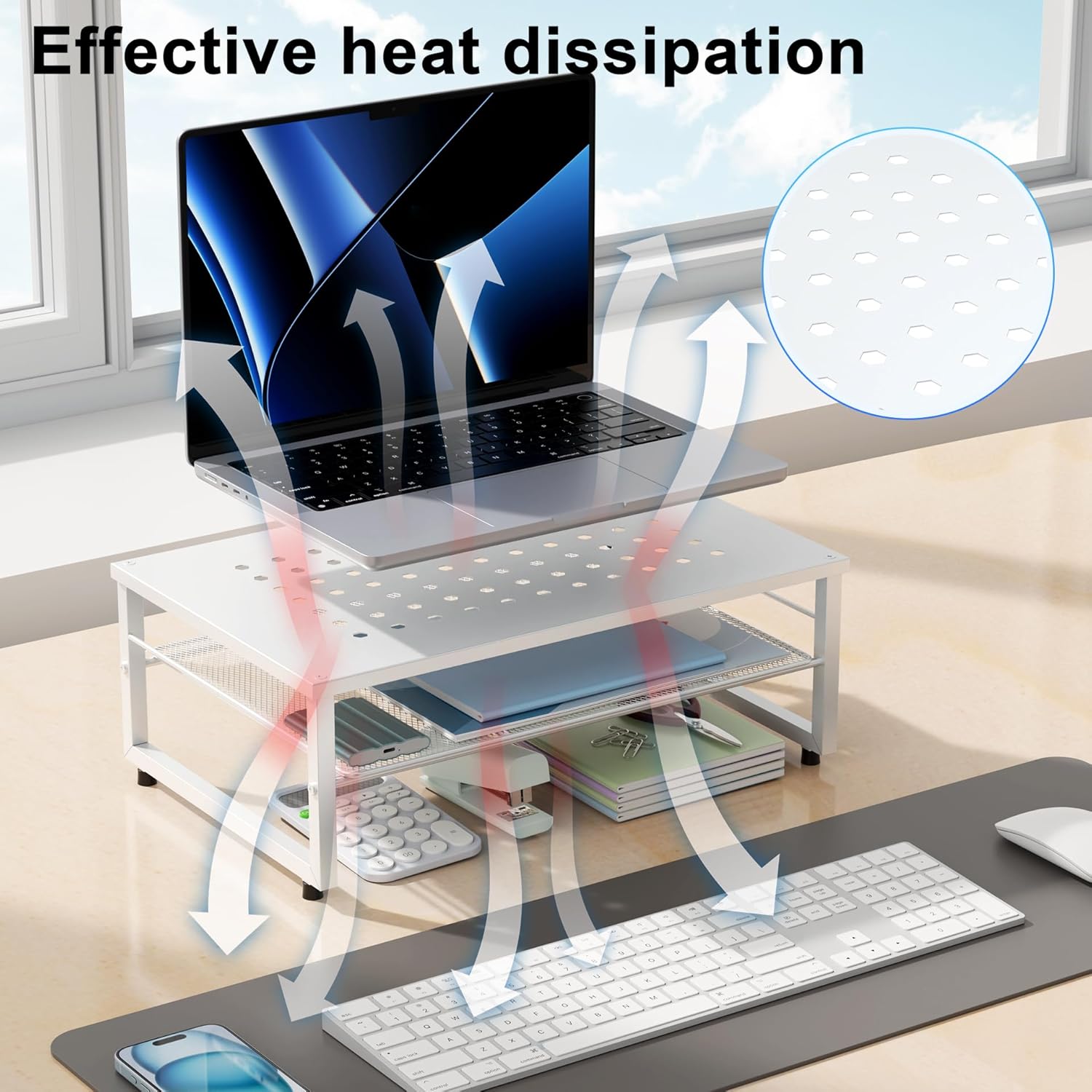 - 【Practical and Stylish】 The laptop stand has a simple yet sophisticated dual-layer design, providing ample space to store various office supplies, keeping your desk tidy. This allows you to work more efficiently in a comfortable and organized environment.