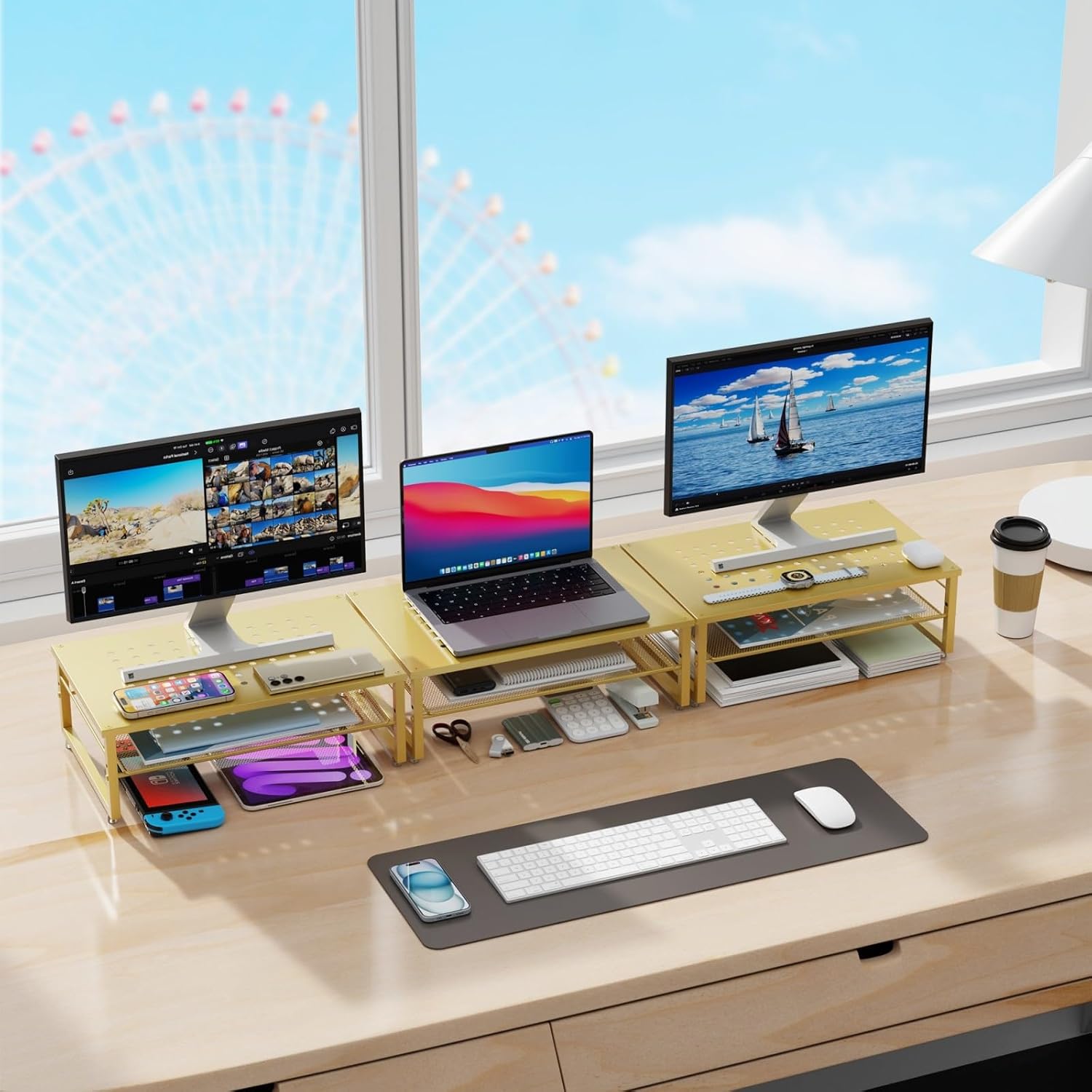 - 【Practical and Stylish】 The laptop stand has a simple yet sophisticated dual-layer design, providing ample space to store various office supplies, keeping your desk tidy. This allows you to work more efficiently in a comfortable and organized environment.