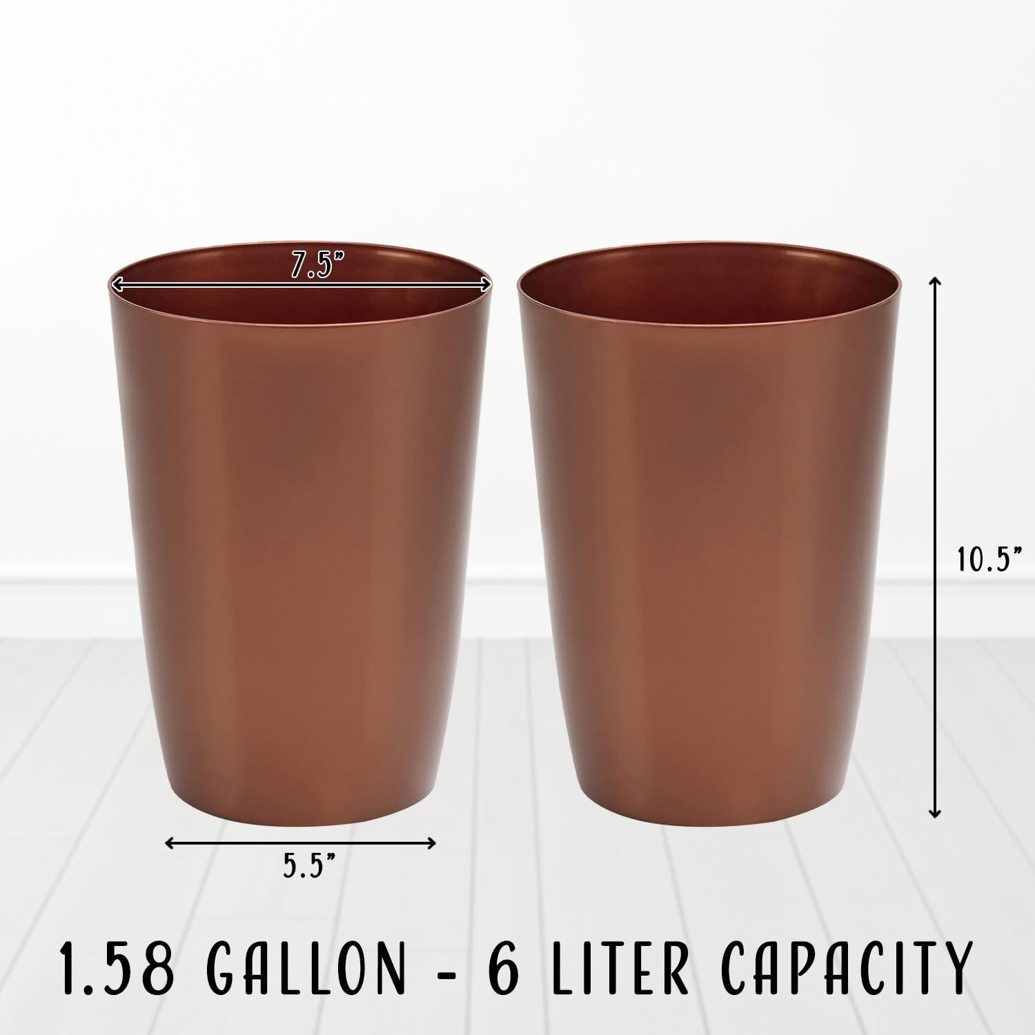 HOLDN’ STORAGE Small Trash Can - Set of 2 Open Top Waste Bin of 1.58 Gallon, Compact Waste Can Perfect for Bathroom, Kitchen, Office, Dorm - Durable Garbage Can - Copper