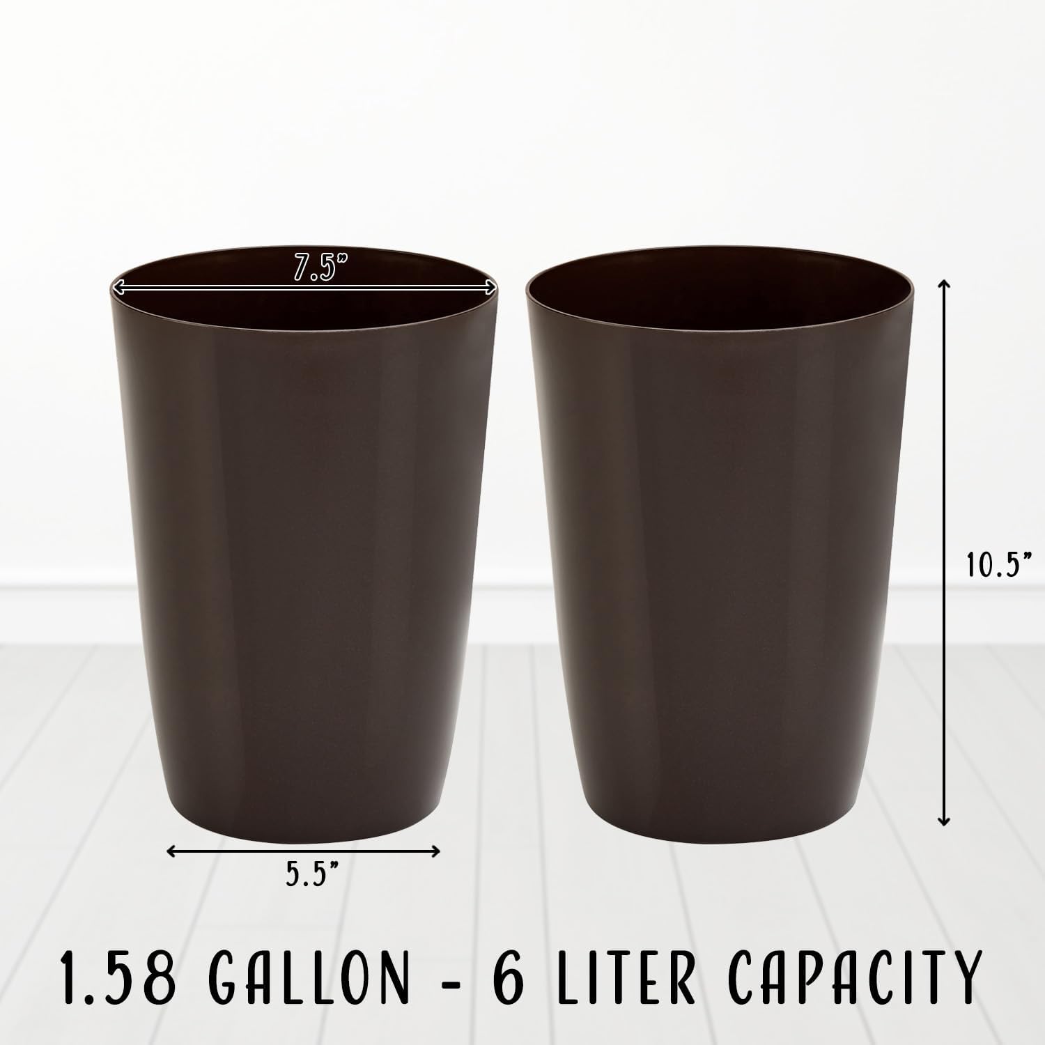 HOLDN’ STORAGE Small Trash Can - Set of 2 Open Top Waste Bin of 1.58 Gallon, Compact Waste Can Perfect for Bathroom, Kitchen, Office, Dorm - Durable Garbage Can - Metallic Brown