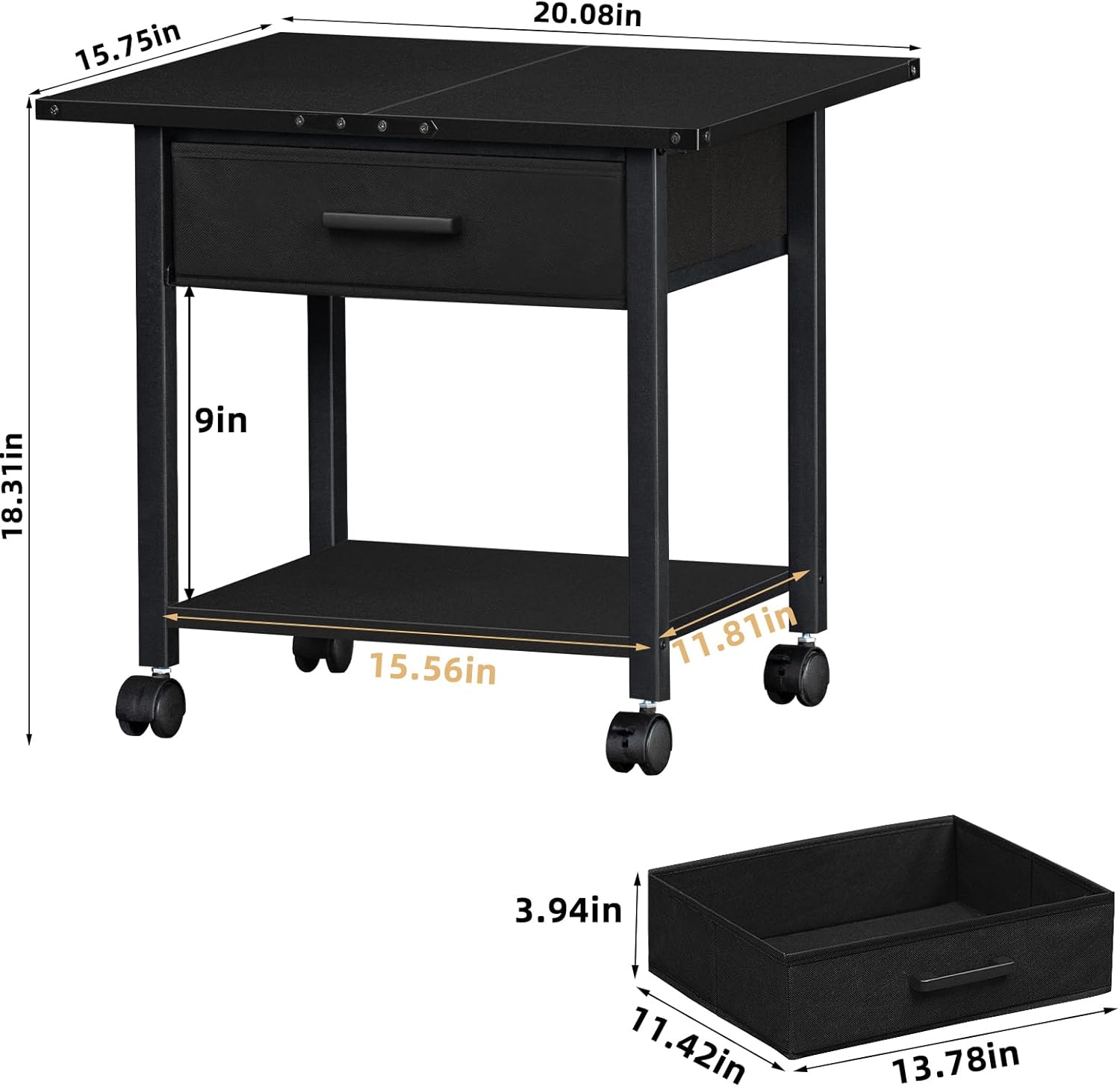 - [Large Printer Stand] 20.08 "L X 15.75''W Extra large desktop can hold different sizes of printers. The fabric drawer and bottom shelf provide extra storage space. You can place it on the desktop or underneath the table for easy access. The printer desk stand is so flexible and convenient to effortlessly optimize your desk, living room and kitchen.