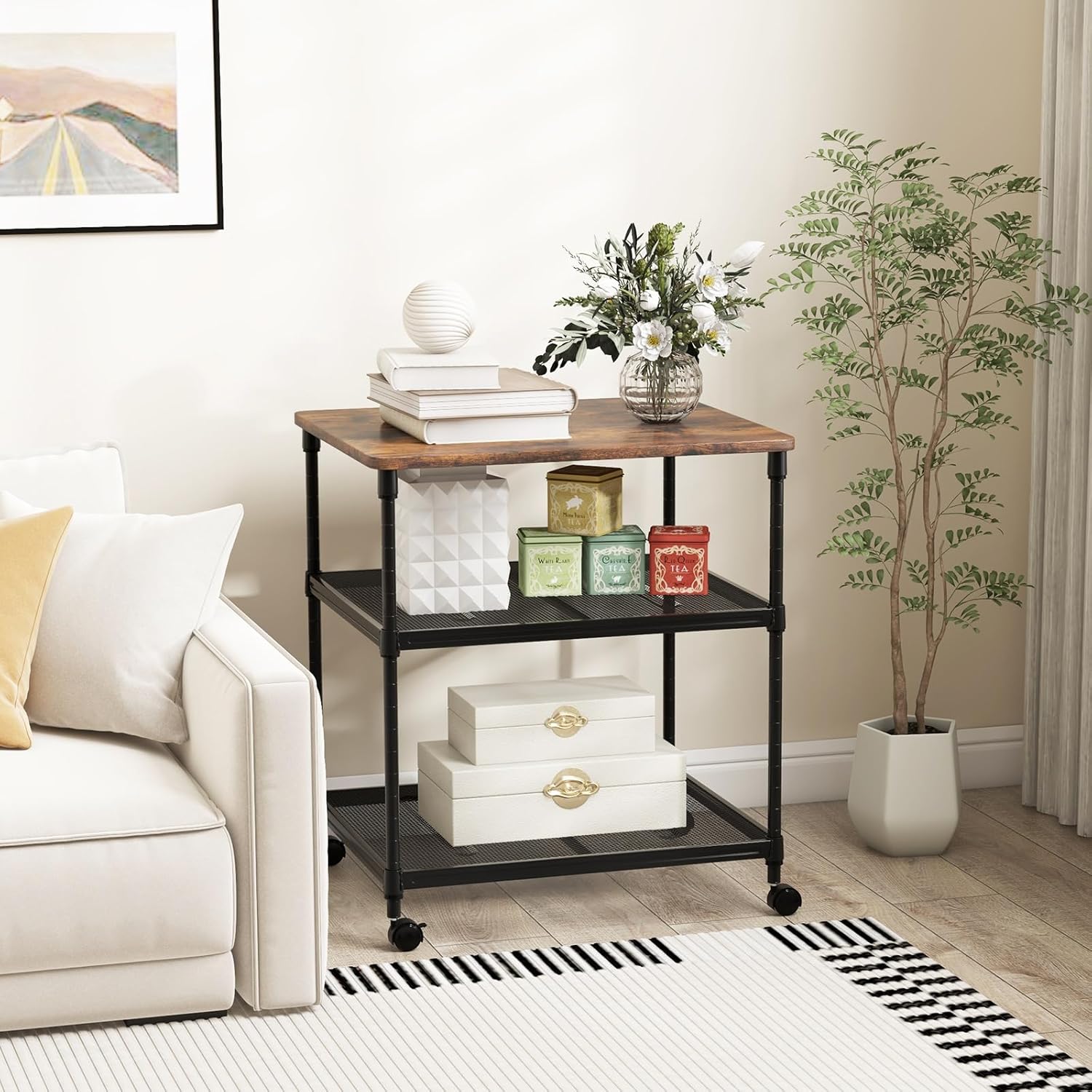 Tangkula 3-Tier Printer Stand, Multifunctional Utility Cart with Ample Storage Space, Rolling & Lockable Wheels, Sturdy Metal Frame, Adjustable Heights, Printer Cart (Rustic Brown)