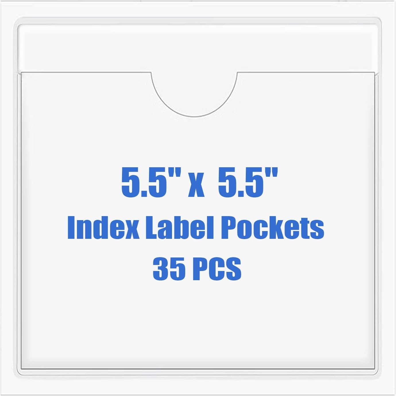 Origin-Joy 35 PCS Self Adhesive Index Card Pockets with Top Open, Clear Plastic Label Holder for Cards of Note, Library and Business, Adhesive Label Pockets & Card Holder (5.5 x 5.5 inch)