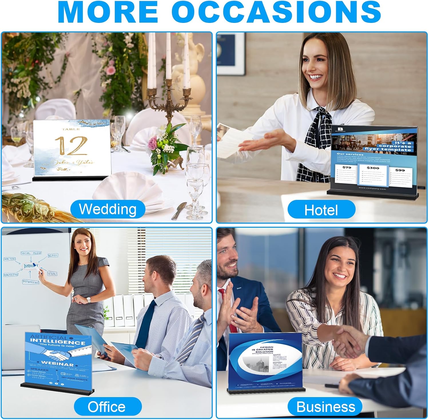 - Wide Range of Application: Can be used as table displays, event planning, business advertising and promoting at work, such as bar menu holder, displaying signs for a wedding, party flyer holders and office meeting