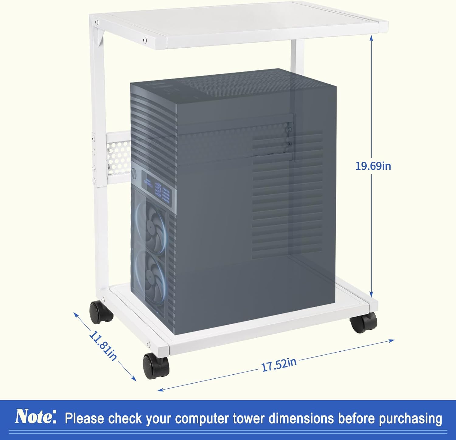 Liitrton PC Tower Stand 2-Tier CPU Stand with Locking Caster Wheels for Office & Home - Iron-White