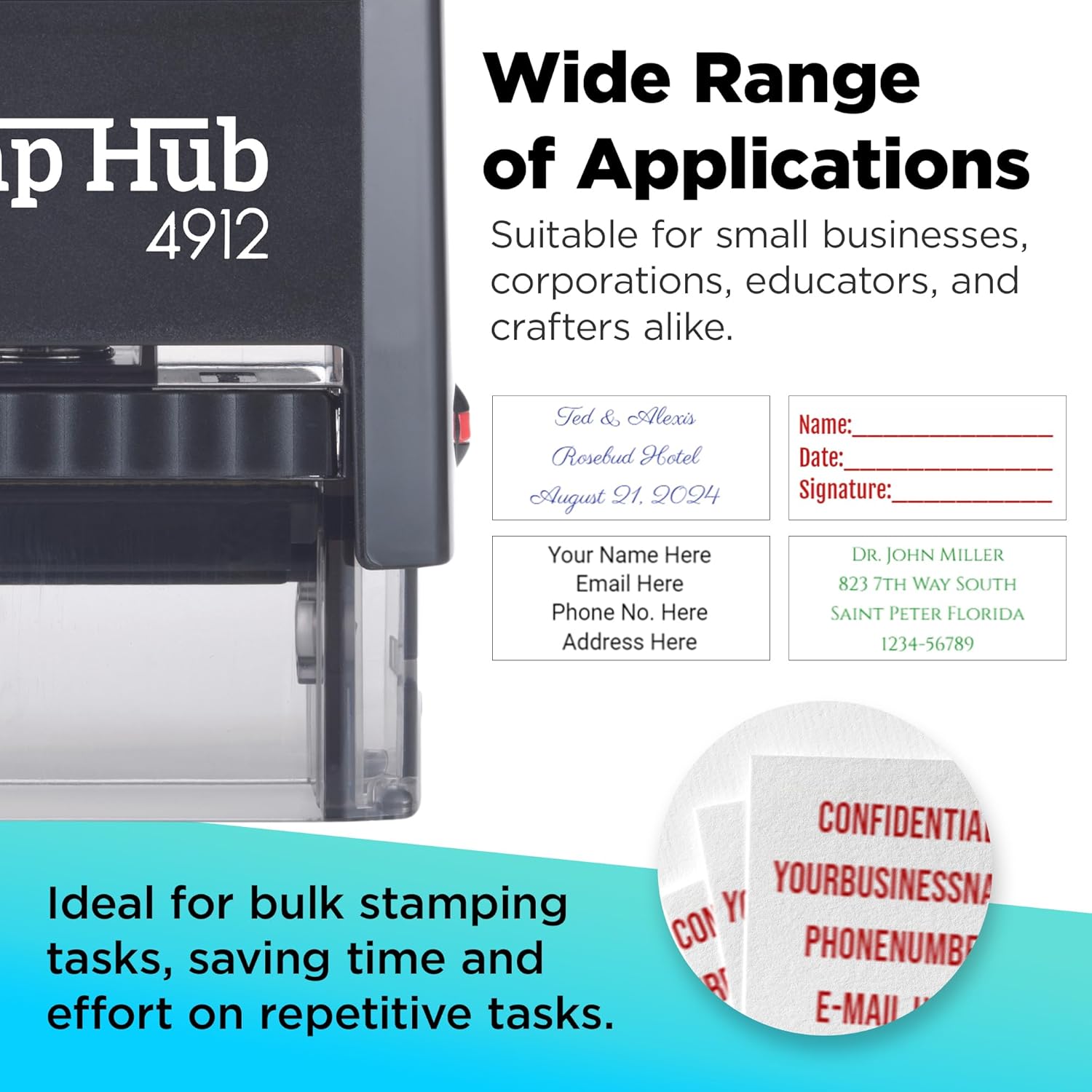 - Self-Inking Technology: Stamp Hub's self-inking stamps offer sharp, crisp prints with every use. Long-lasting ink pads provide thousands of impressions. Hassle-free, clean, and user-friendly, perfect for offices and professionals.