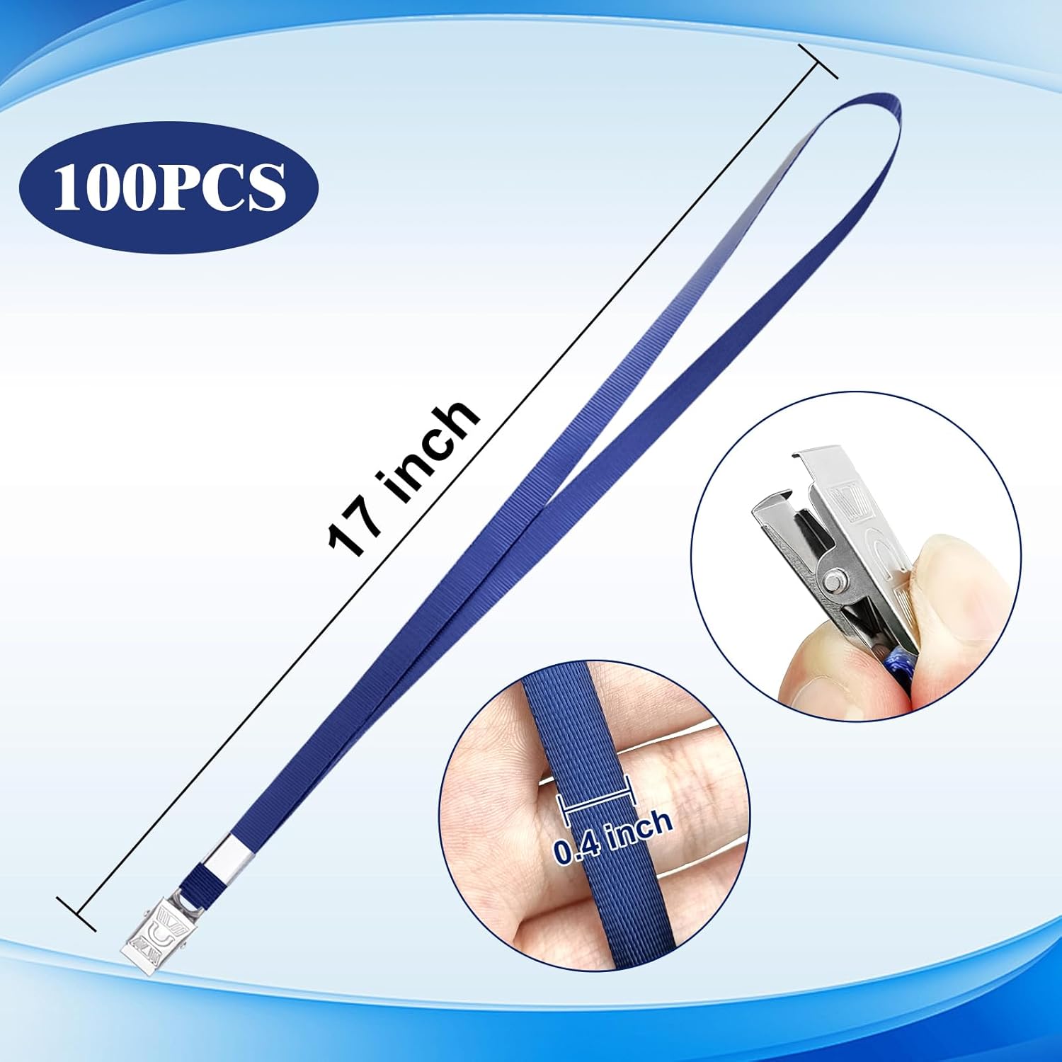 • Package include:You will get 100 pieces black lanyard with metal flat badge clip,0.4" wide,17"length.