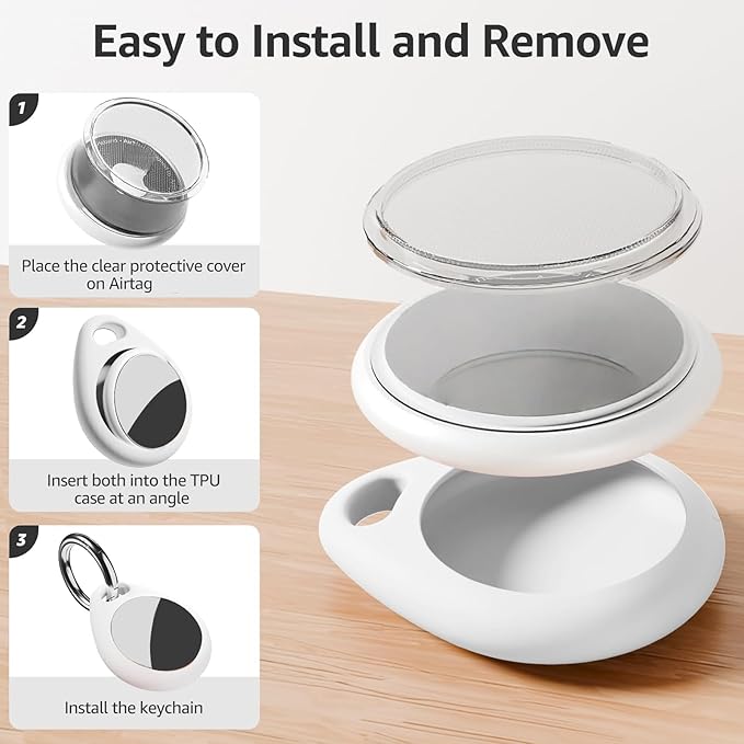 - Easy to Install: Just place the cover on top of AirTag and guide it around until it is securely enclosed. The case provides a decent seal and allows the shiny logo to be visible, adding a stylish touch