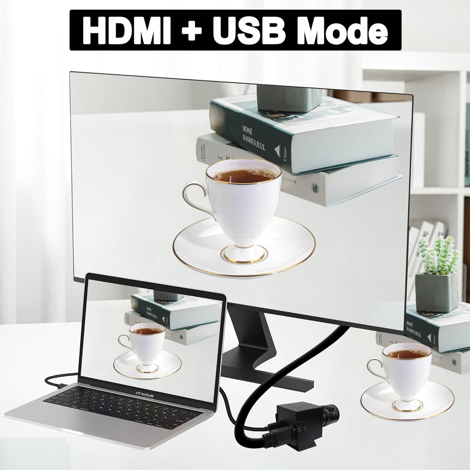 - This camera offers both USB and HDMI outputs, allowing for versatile connectivity options. This means you can connect it to a computer for video recording, use it simultaneously with a computer and an HDMI monitor for professional recording, or connect it directly to an HDMI monitor or projectors for video display during presentations or streaming.