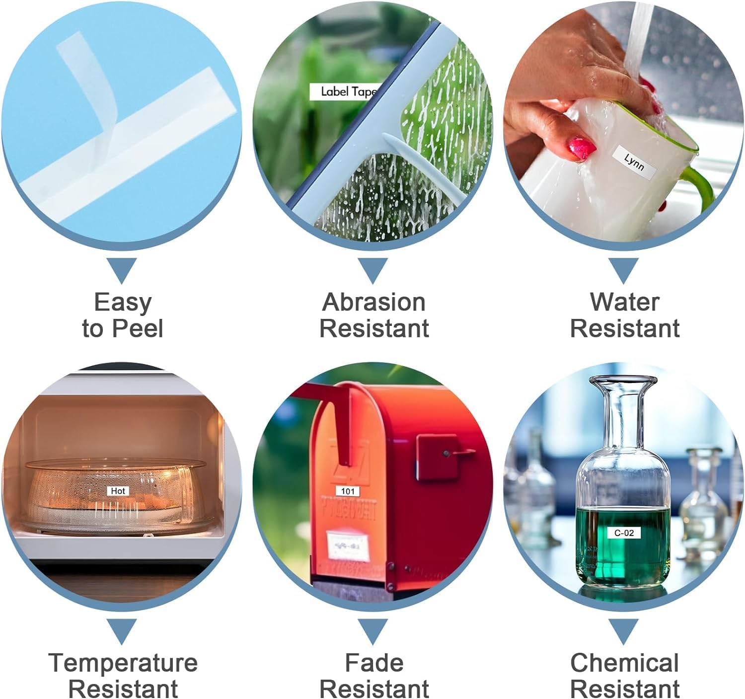 - Color: Black on Clear; Size: 3/8 Inch x 26.2 Feet, 9mm (Width) x 8m (Length)