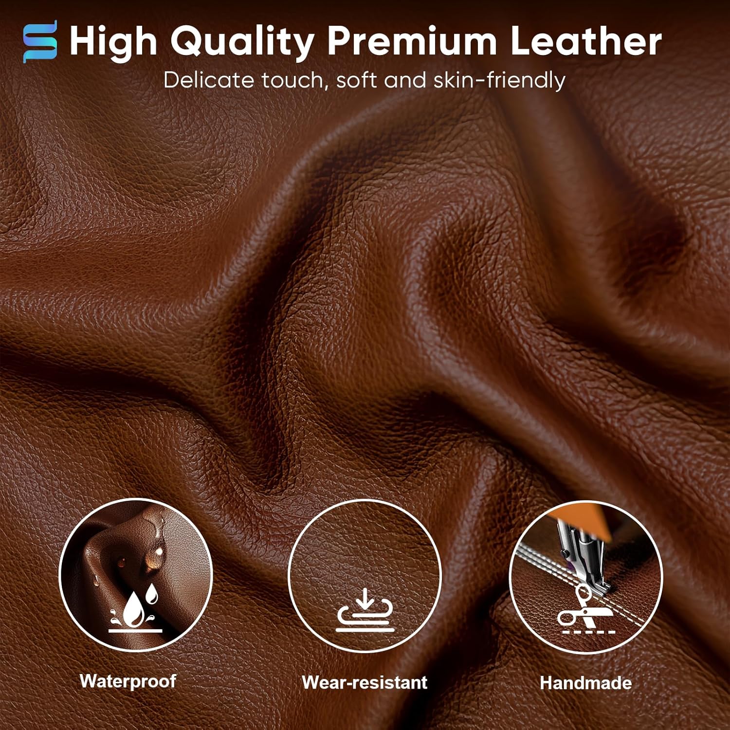 - High-Quality PU Leather:The ergonomic chair is made with a whole piece of PU leather, which is waterproof, skin-friendly, wear-resistant, non-fading and easy to clean. The leather is hand-cut and sewn, with added embroidered details for a unique and stylish touch