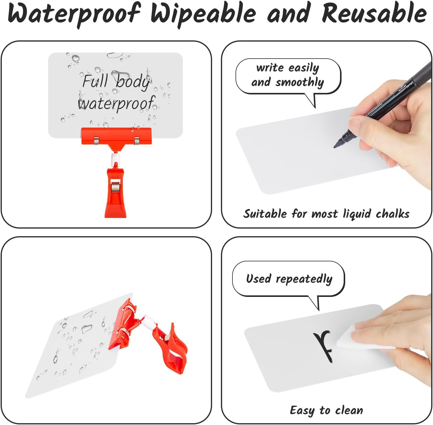 - 【Writable and Erasable】- The retail sign rack holder is easy to write with liquid chalk markers (can't write in chalk) on both sides, easy to wipe away with sponge or cloth, so that you can reuse the tag.