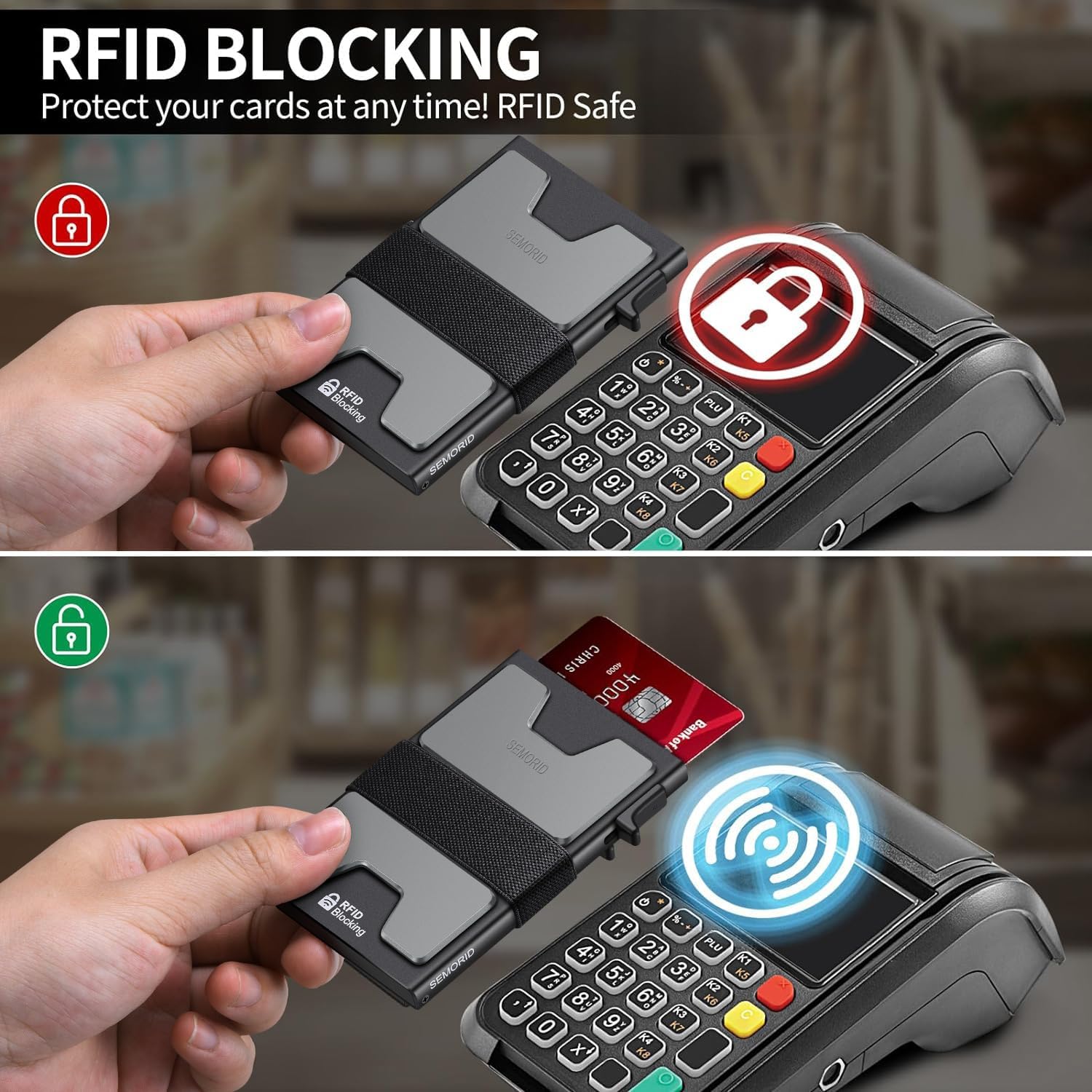 - 🔒 RFID & NFC BLOCKING: This smart wallet use advanced aluminium technology to protect your cards from unauthorized and contactless scanning. Stop thieves from cloning your bank cards and prevent data theft.