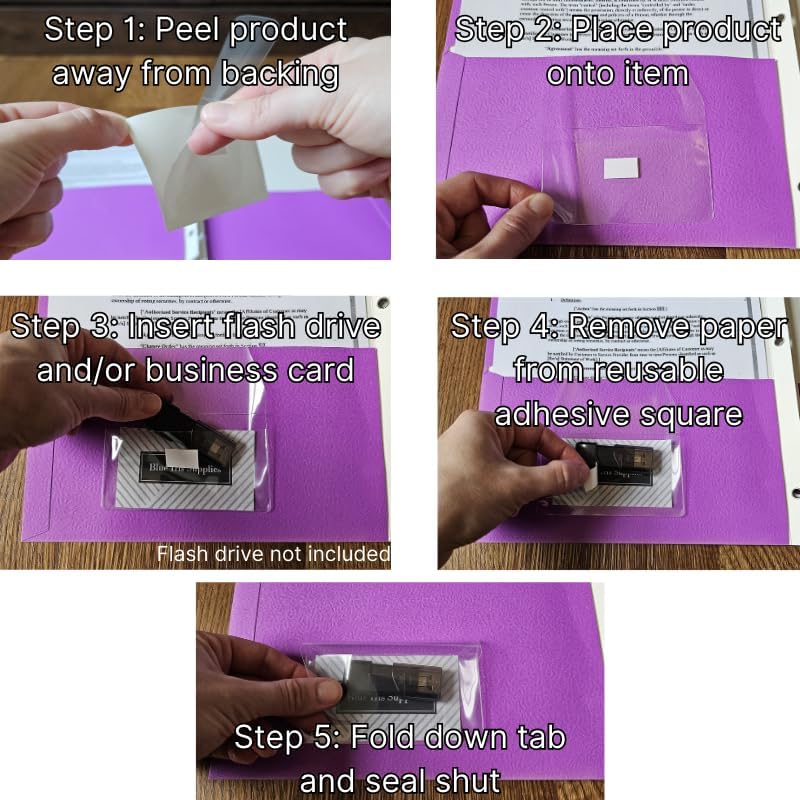 Business Card Pocket - Flash Drive Pocket - Self Adhesive - Open Long - Resealable Flap - BIS10130 (500-Pack), Clear