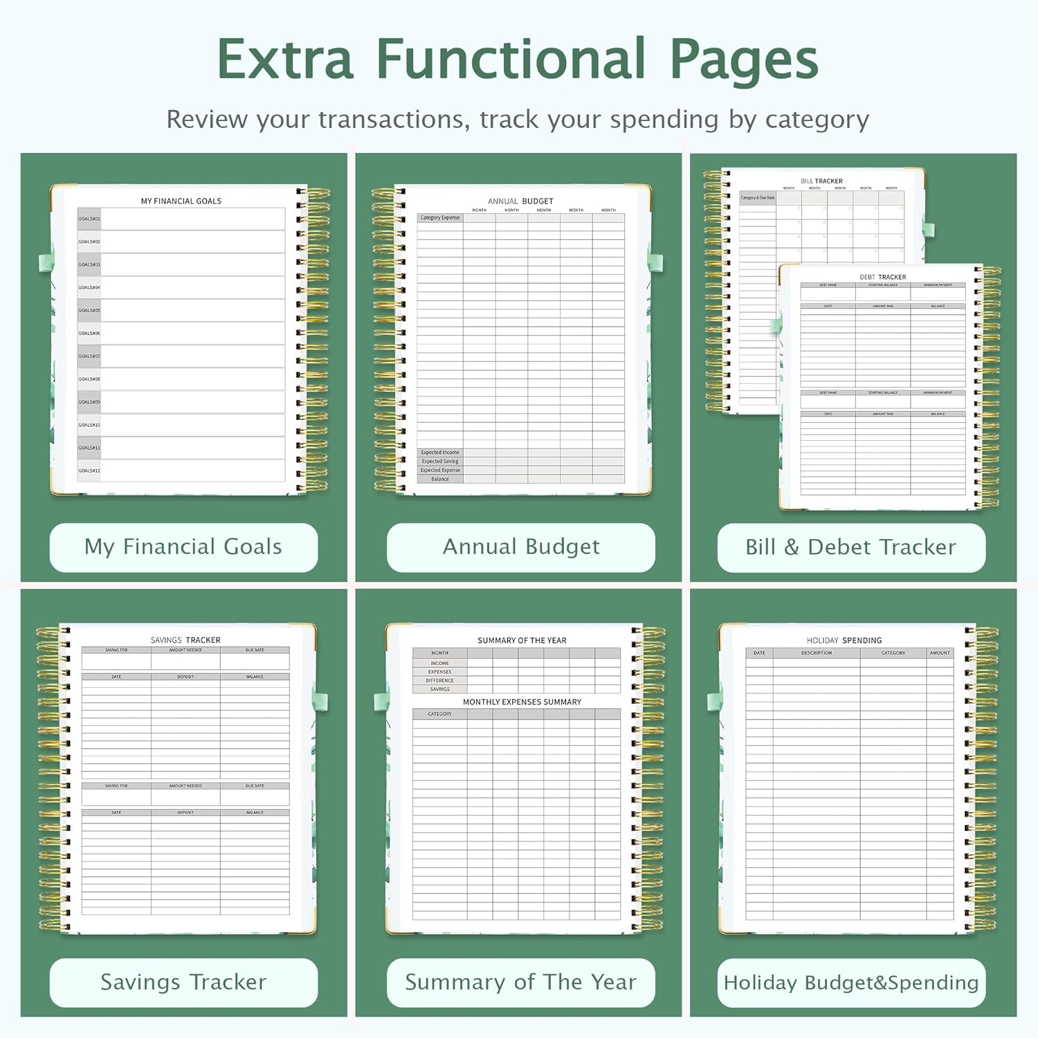 Ospelelf Undated Budget Planner with Expense Tracker and Bill Organizer Large Spiral Bound Monthly Account Planners to Take Control of Your Money 12 Months Green