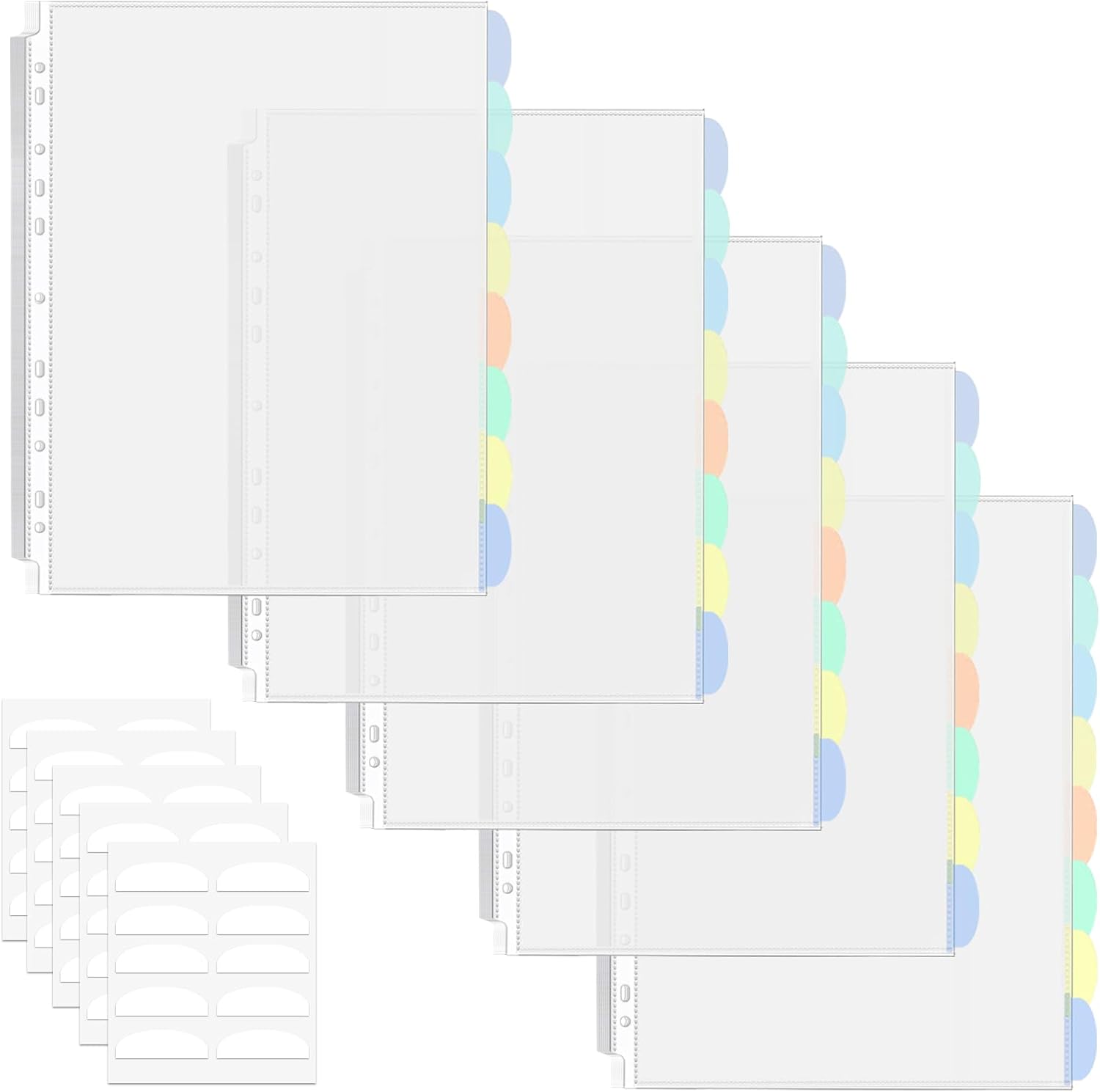 5 Set of 40 Pack Sheet Protectors 8.5 x 11 Inch, Letter Size Sleeves Binder Index, Dividers Pocket for 2/3/4 Ring Binder Dividers with 8 Tabs, Clear Page Protectors Organizer for School Home Office