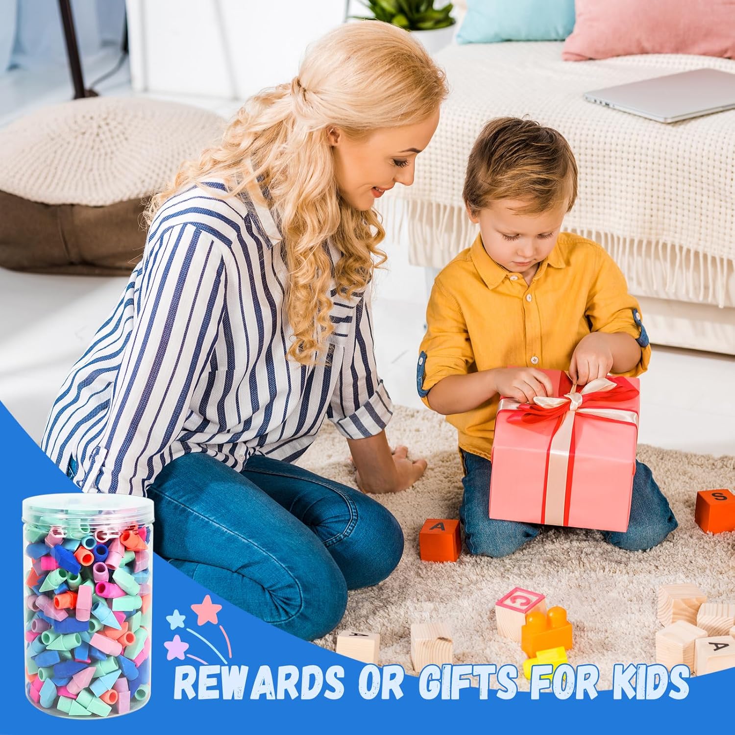 - The color of eraser caps for pencils are interesting assorted, most kids or students like it, it's a good choice as a prize or gifts on Birthday,Valentine's Day,Christmas day,or on other special day .