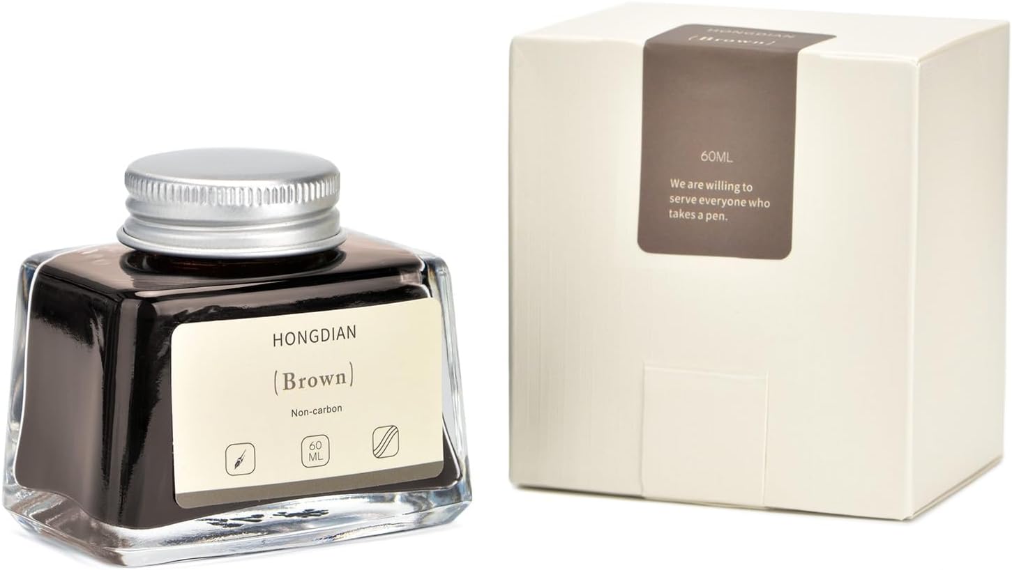 Asvine Hongdian Fountain Pen Bottled Ink Brown, 60ml Fountain Pen Ink Bottled for Writing and Calligraphy, Non Carbon