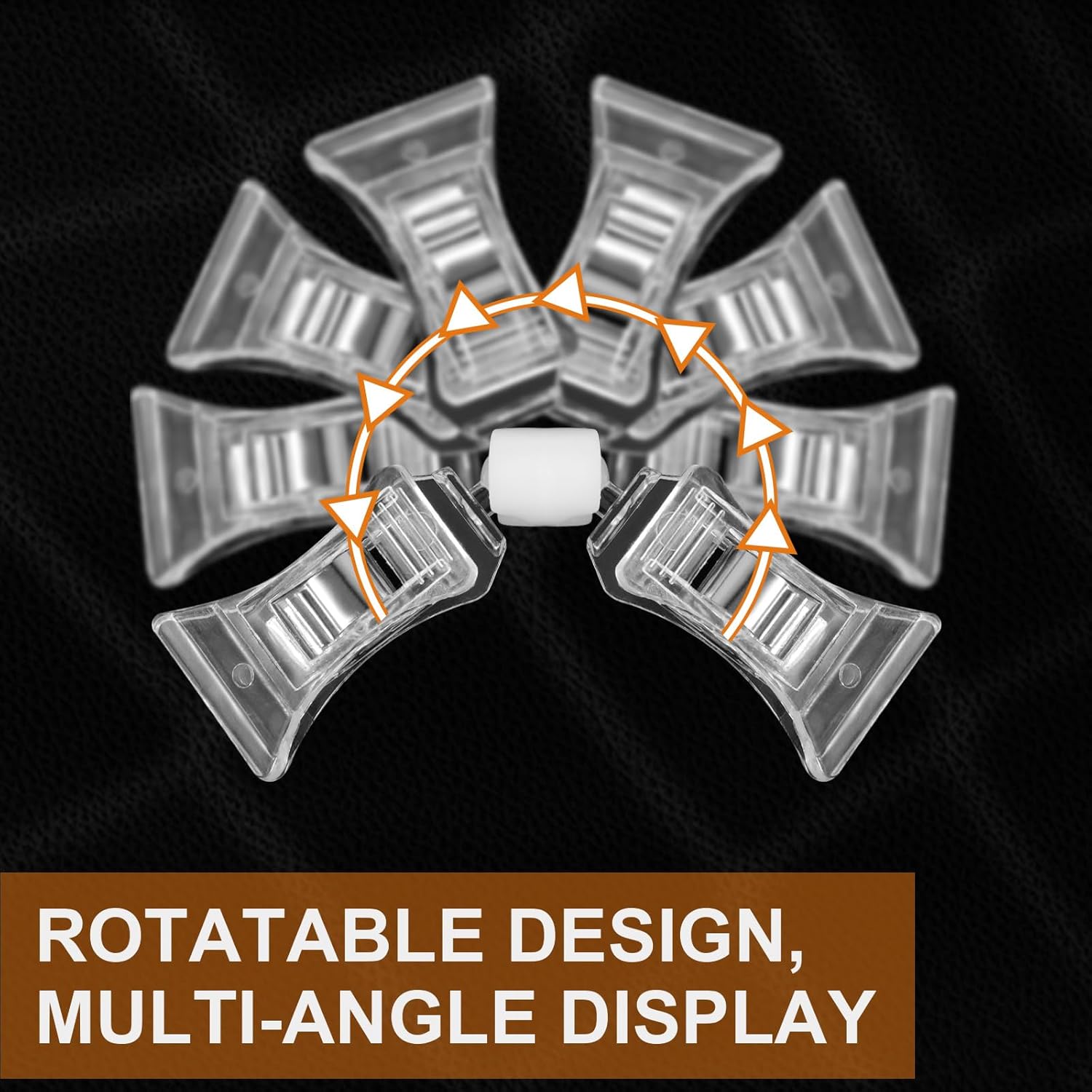 - Practical Display: the rotatable body design of the shelf label holder allows for optimal positioning of the clip, ensuring that the sign is seen, double sided clips are suitable for holding both brackets and signs, making them ideal for price and merchandise displays in stores, supermarkets, and multiple setups.