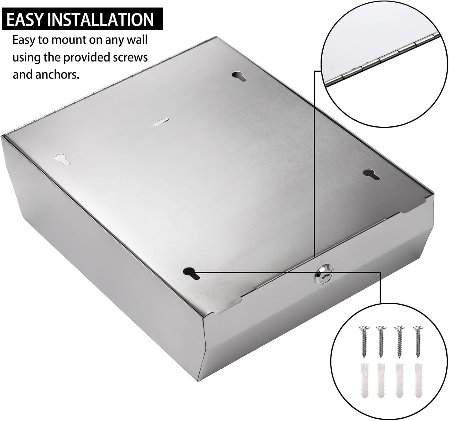 Suwimut Paper Towel Dispenser Wall Mount, Commercial Stainless Steel Hand Towel Dispenser Holds Multifold, Trifold, C Fold, Touchless Hand Towels Dispenser with Lock for Restroom, Bathroom, Kitchen