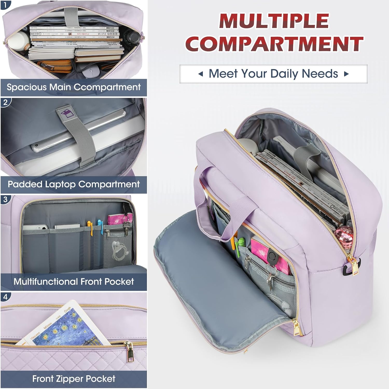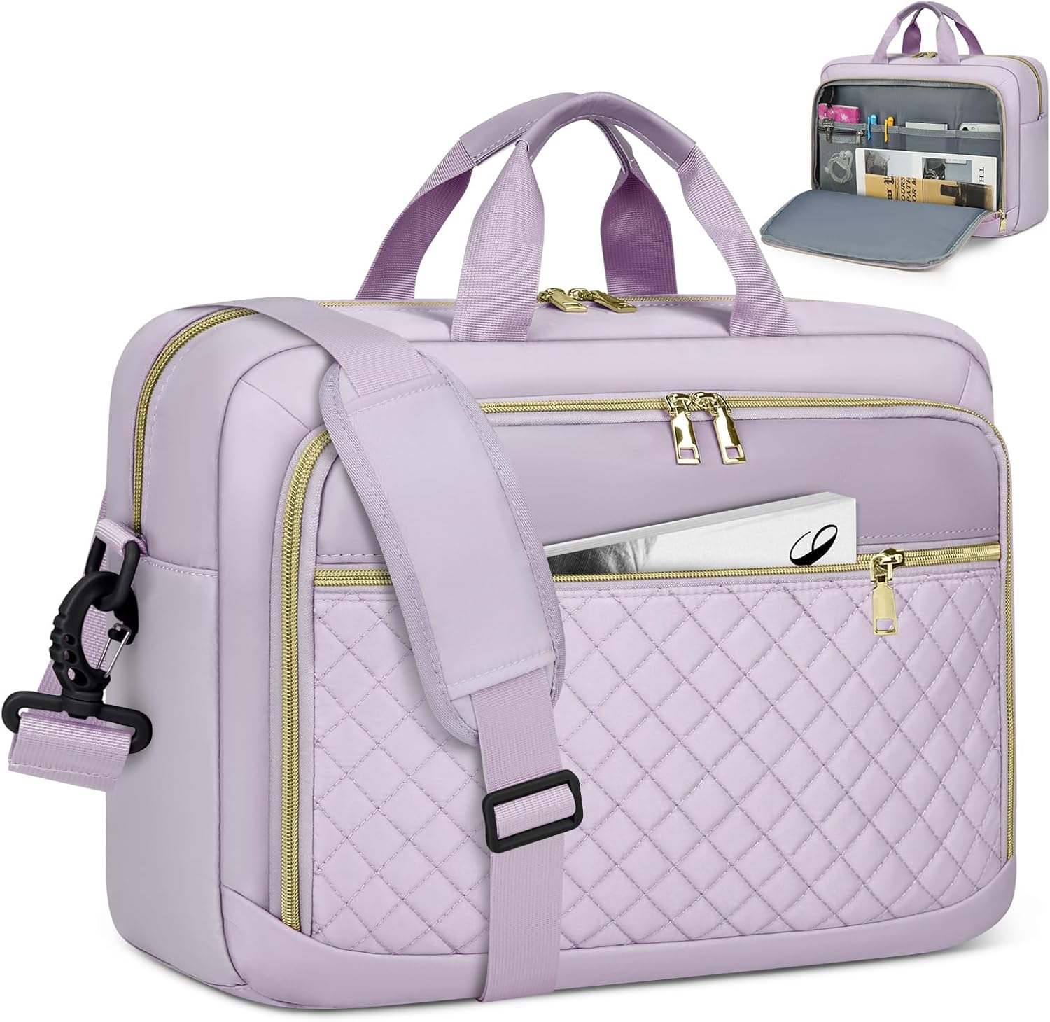 - 【Convenience & Comfortable Design】TSA friendly, separate tech compartment and large opening design allow you to quickly pass through the security check. The laptop bag for women features removable, adjustable padded shoulder strap that can adjust the length to fit different heights and reduce shoulder pressure. Sturdy PU handle to ensure comfortable carrying. Luggage strap allows the laptop messenger bag to slide over the luggage tube, freeing up your hands.