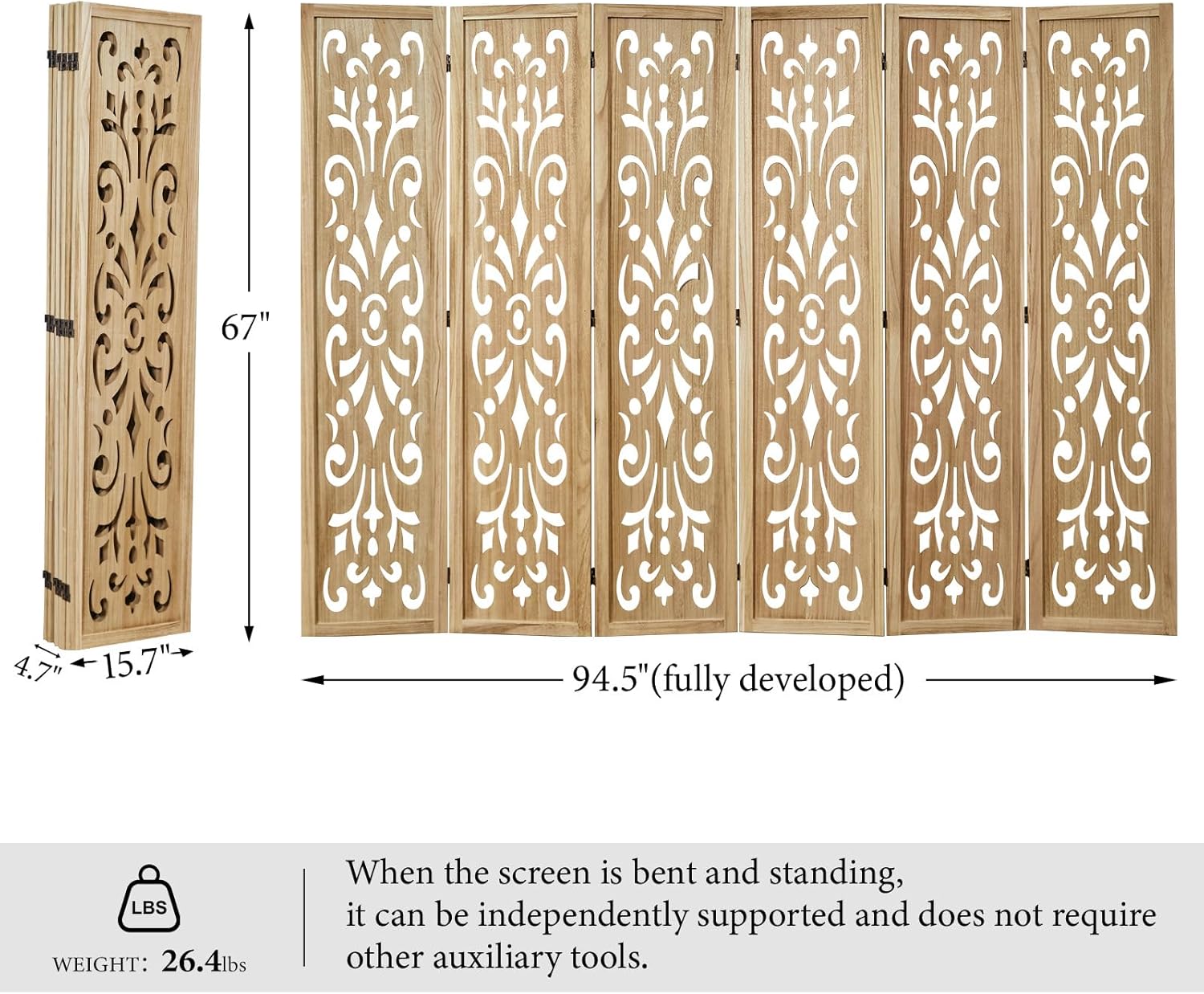- 【Adjustable Size】 The wall divider single piece size is 67*16 inches (H*W) and the 4panels unfolded size is 67*60 inches (H*W),the 6panels unfolded size is 67*94.5 inches (H*W),you can adjust the length of the screen according to your needs